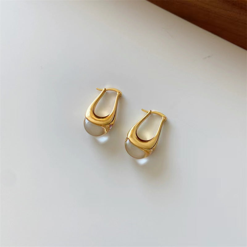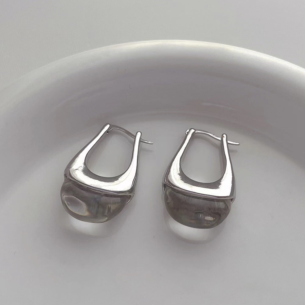 1 Pair Geometric U Shape Copper Crystal Drop Earrings in Gold