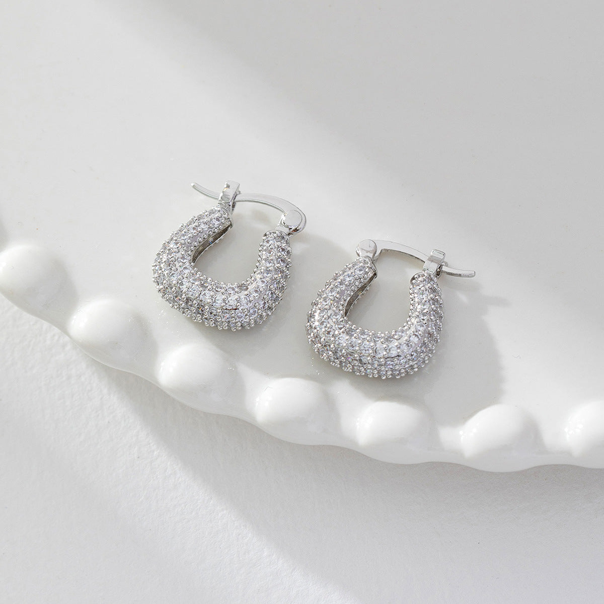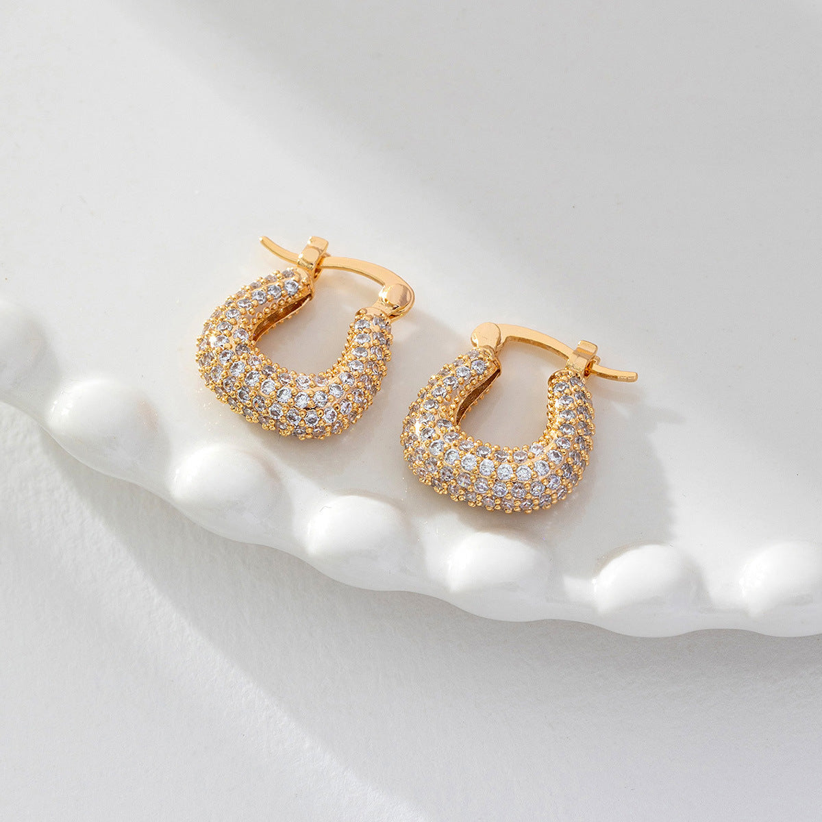 1 Pair Minimalist U Shape 18K Gold Plated Zircon Hoop Earrings