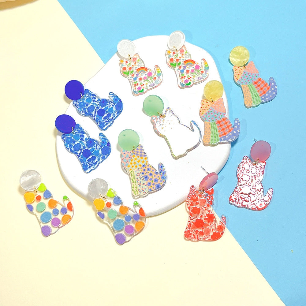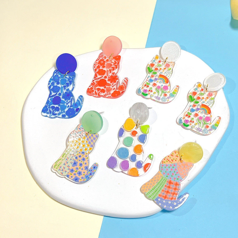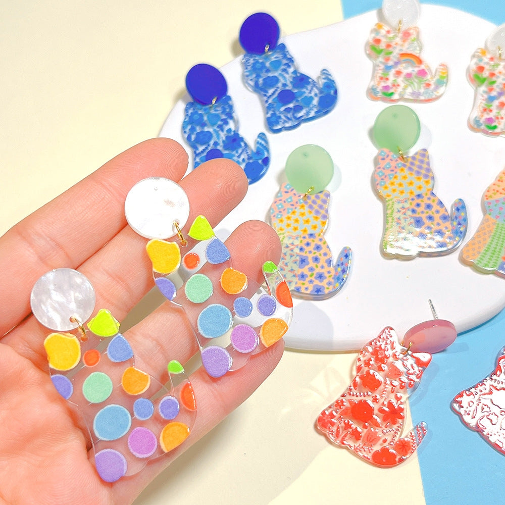 Sweet Cat Acrylic Epoxy Women's Earrings