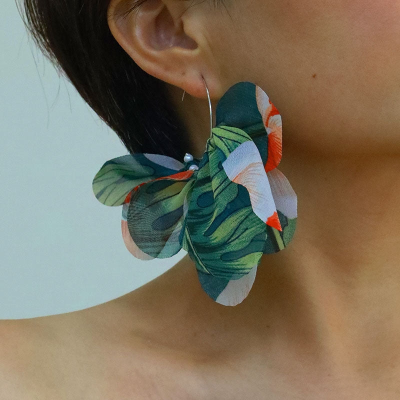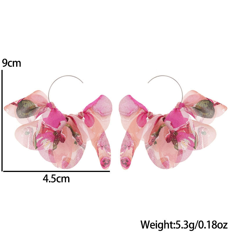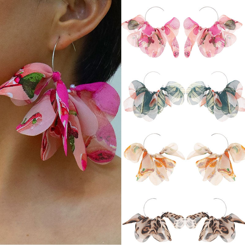 1 Pair Floral Petal Leopard Print Alloy Fabric Drop Earrings