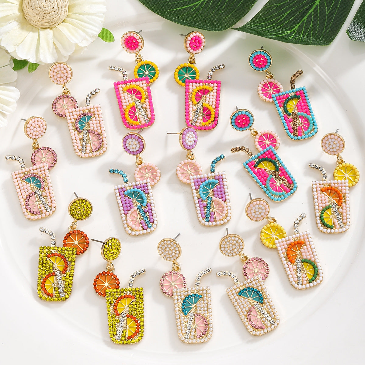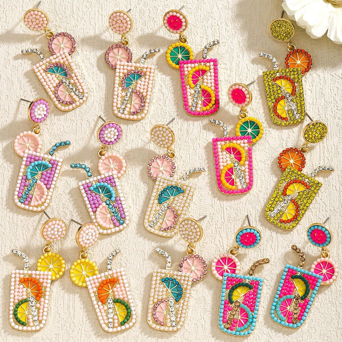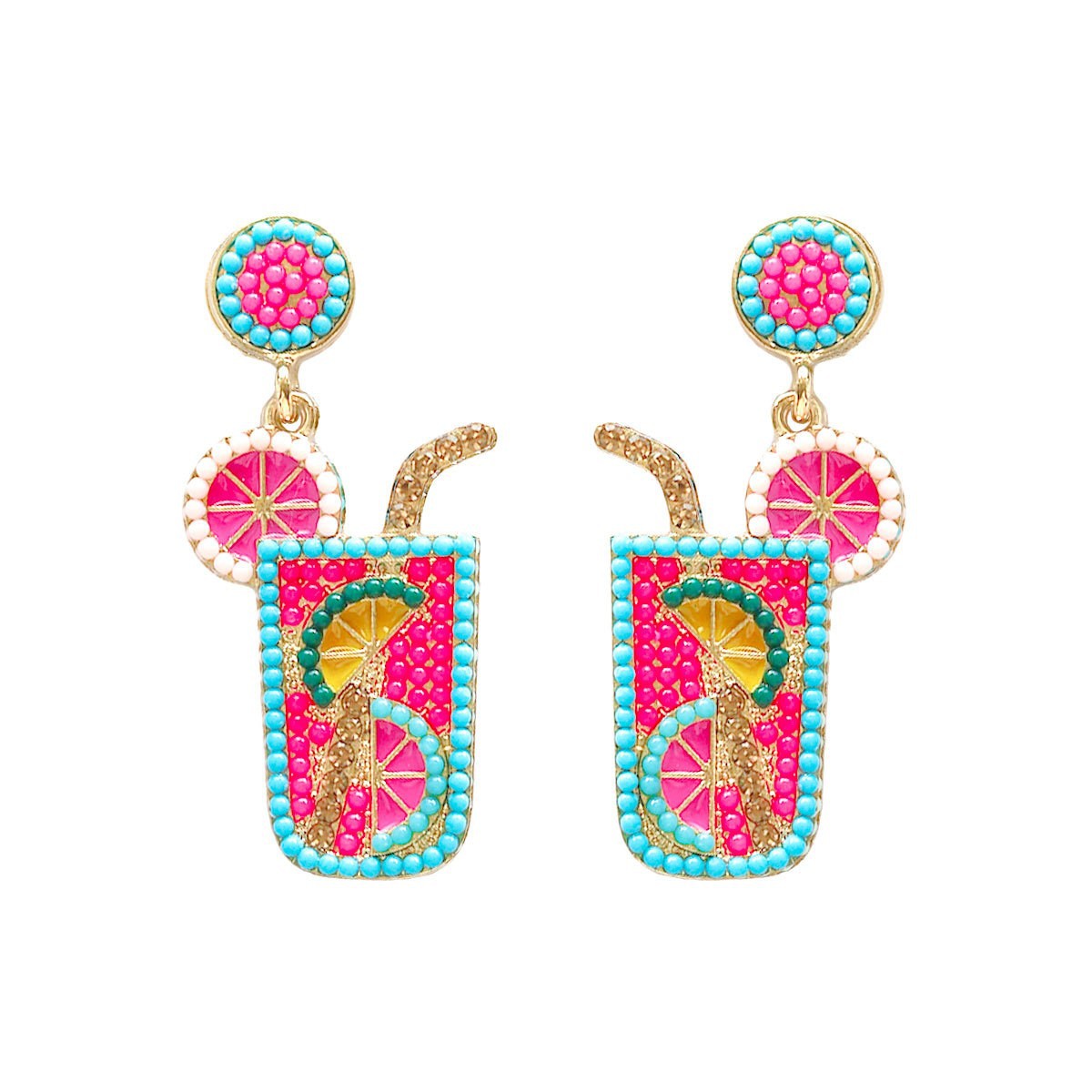 1 Pair Geometric Alloy Drop Earrings with Beaded Cocktail Glass Design