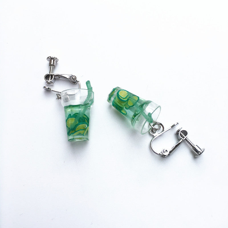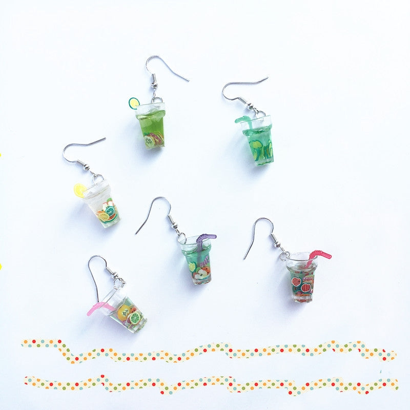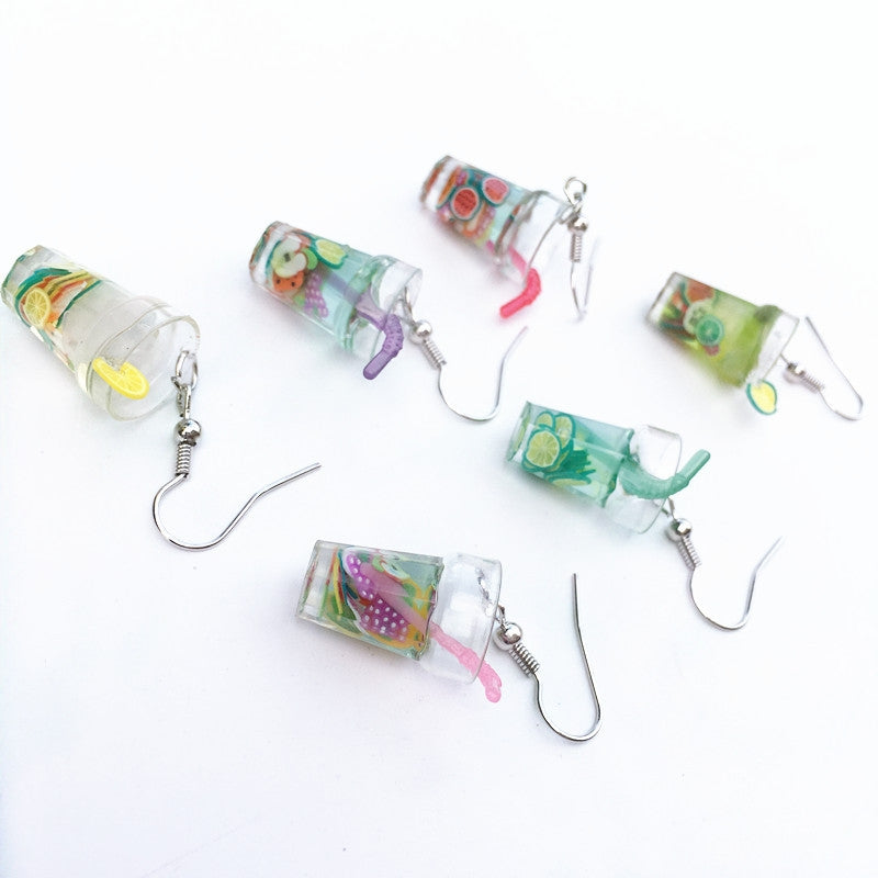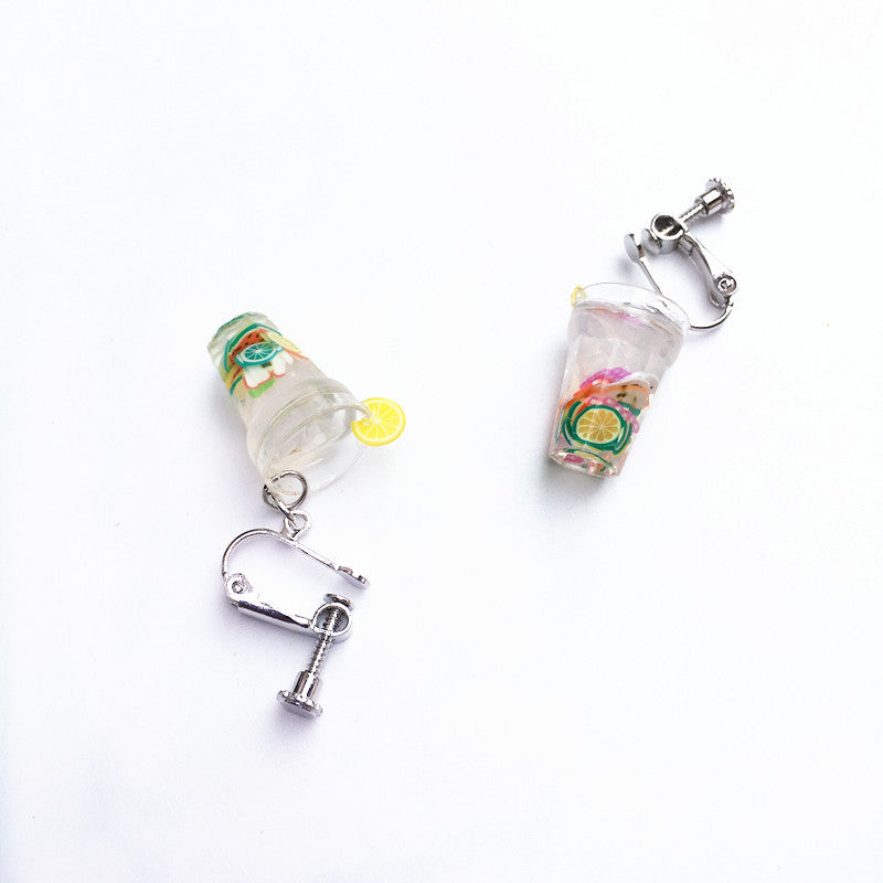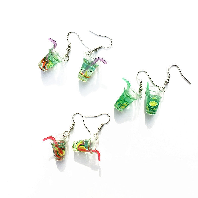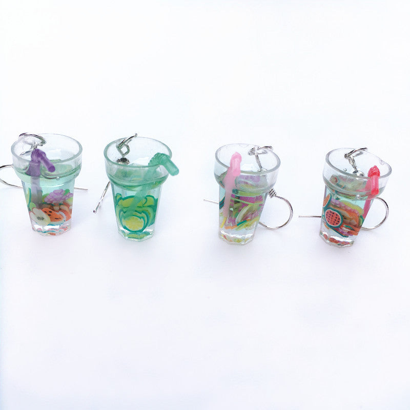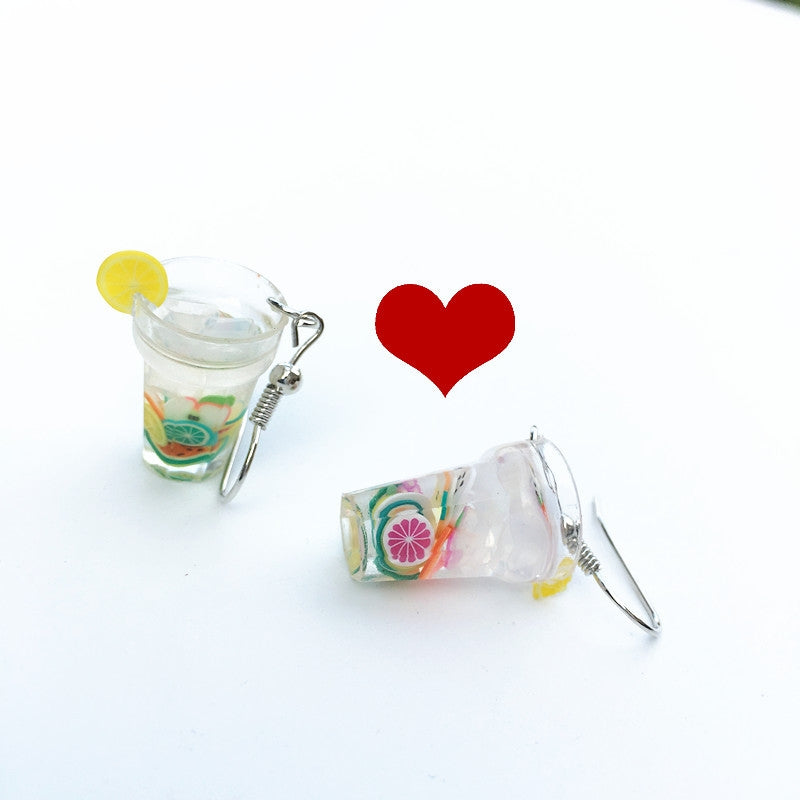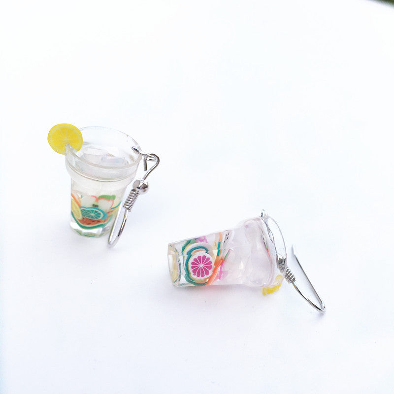 1 Pair Vacation Cup Resin Women's Drop Earrings - Creative Fruit Lemon Tea Design