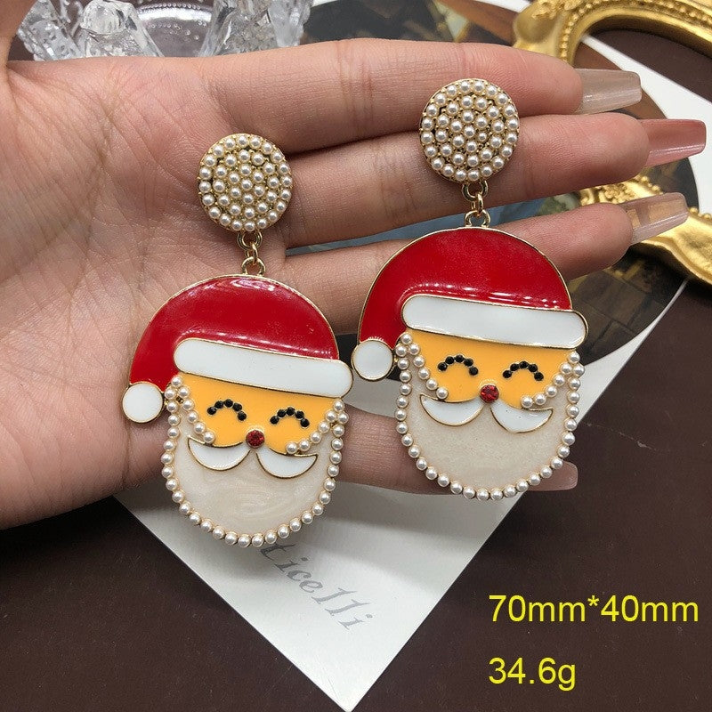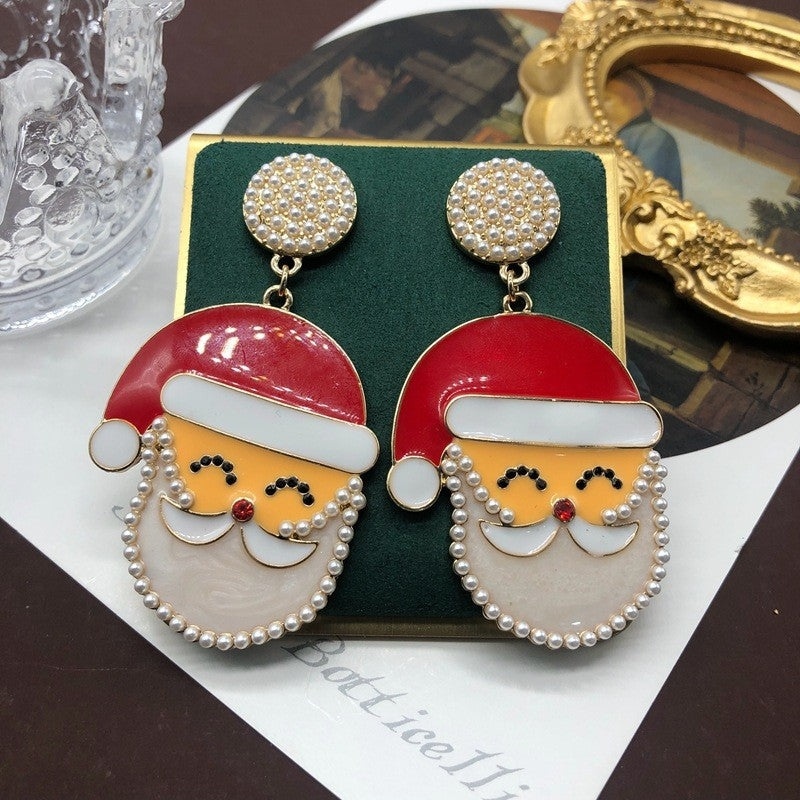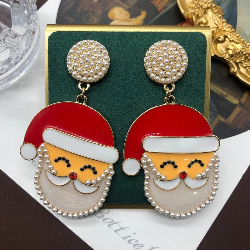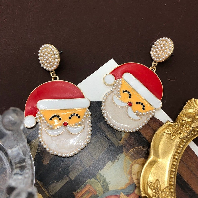 Vintage Christmas Santa Hat Pearl Drop Earrings