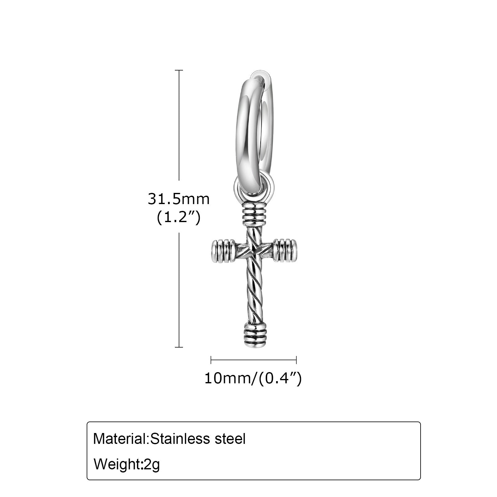Vintage Punk Cross Stainless Steel Dangle Earrings for Men