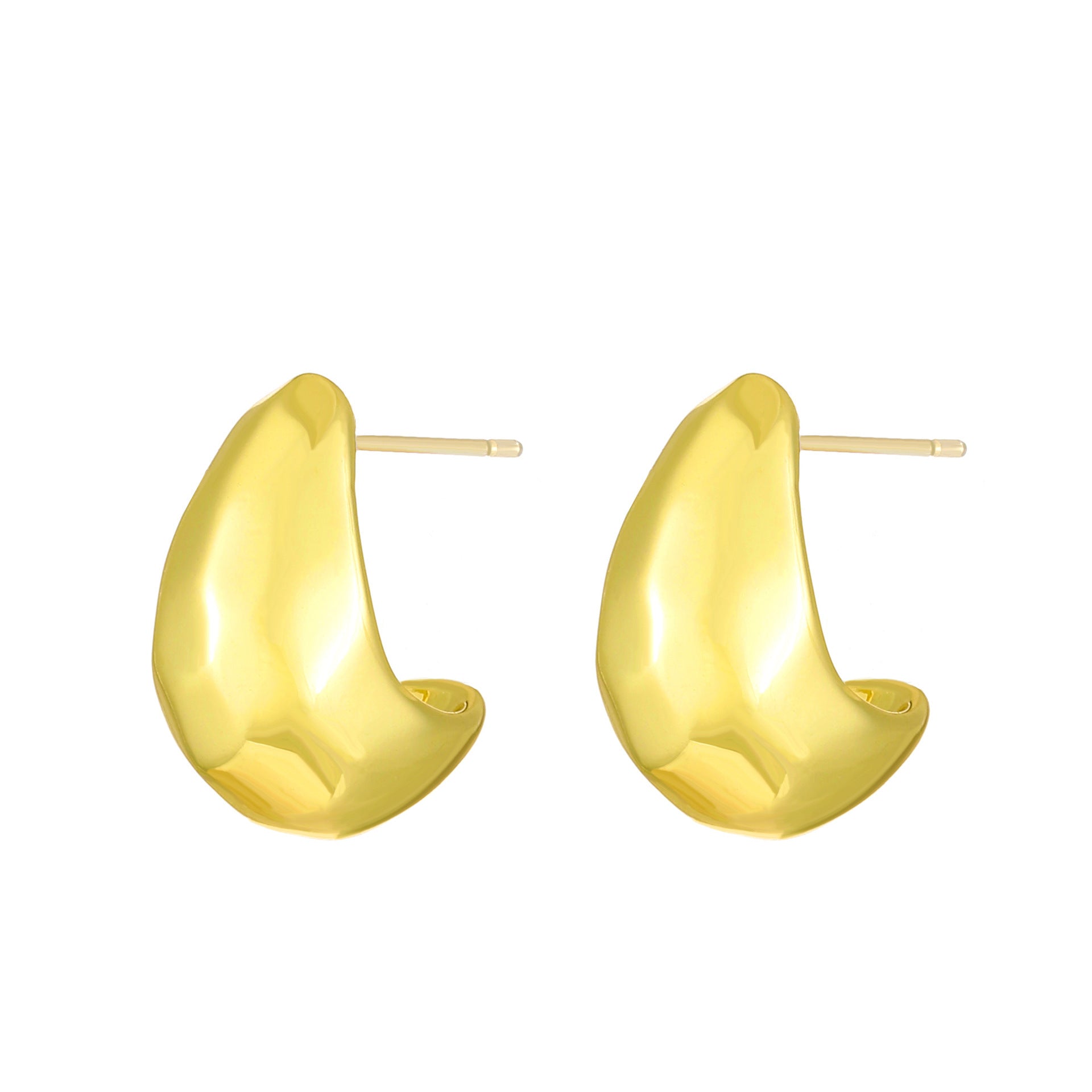 Vintage Water Droplet 14K Gold Plated Silver Stud Earrings