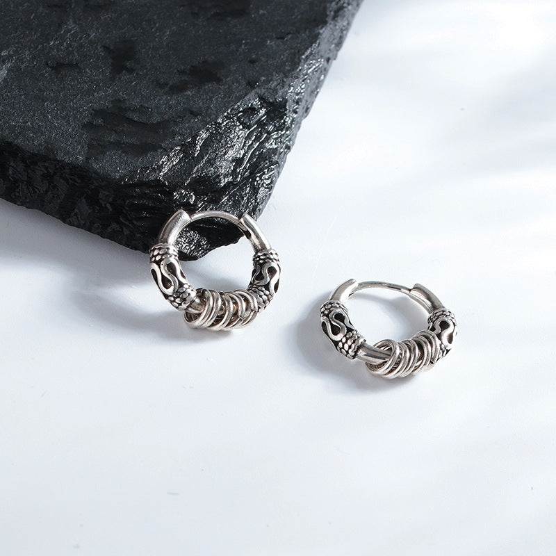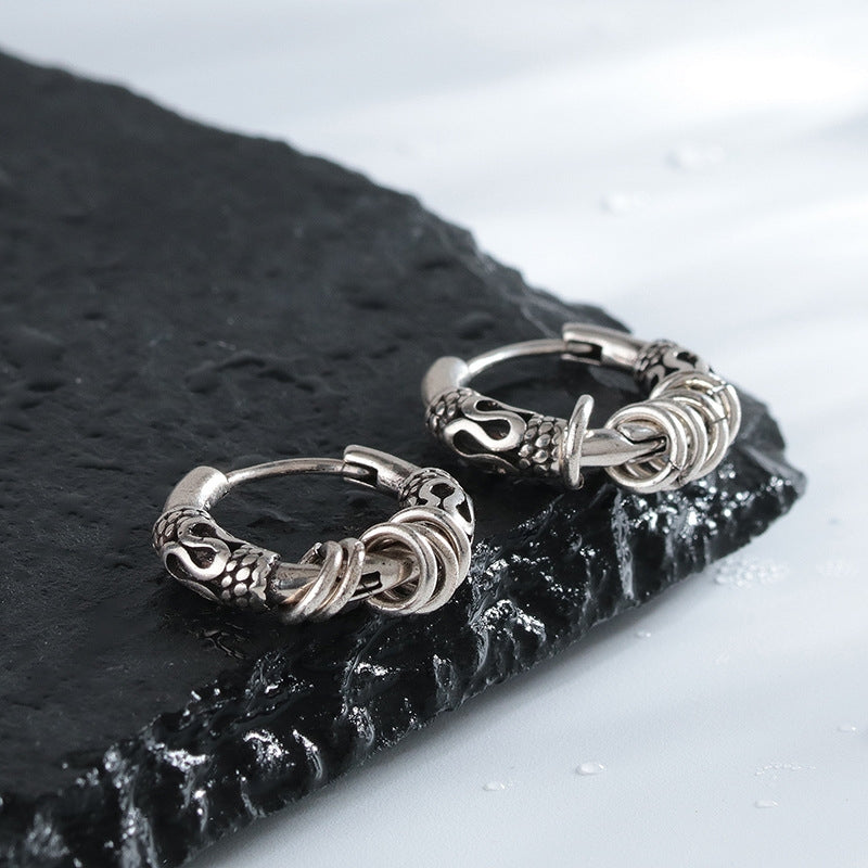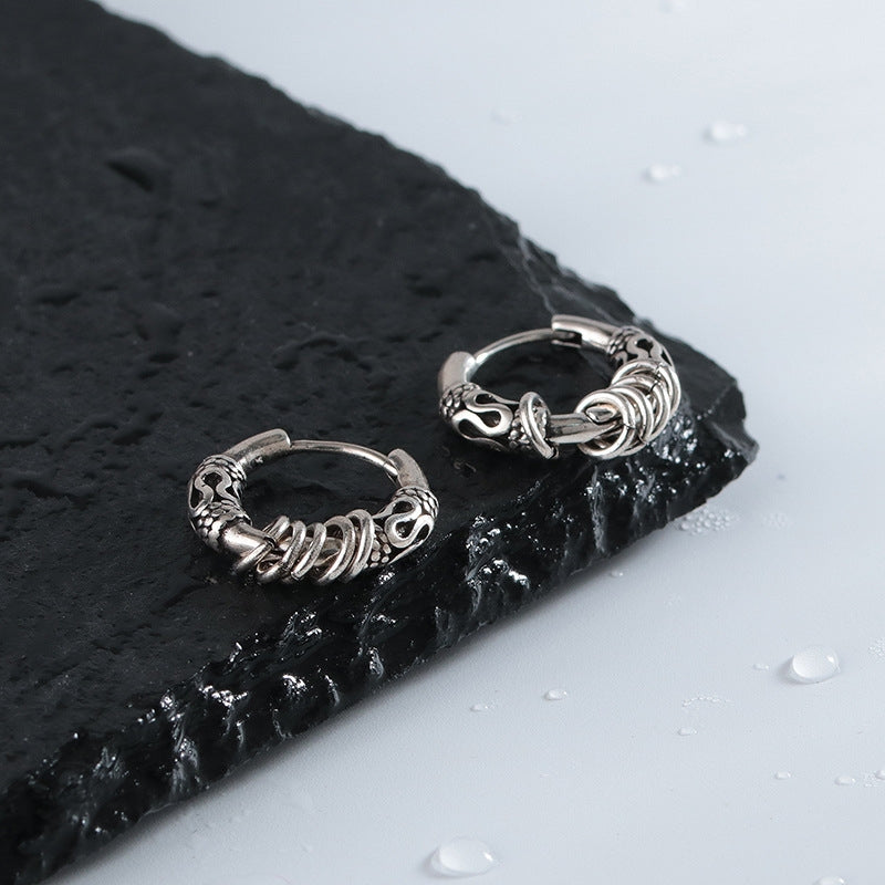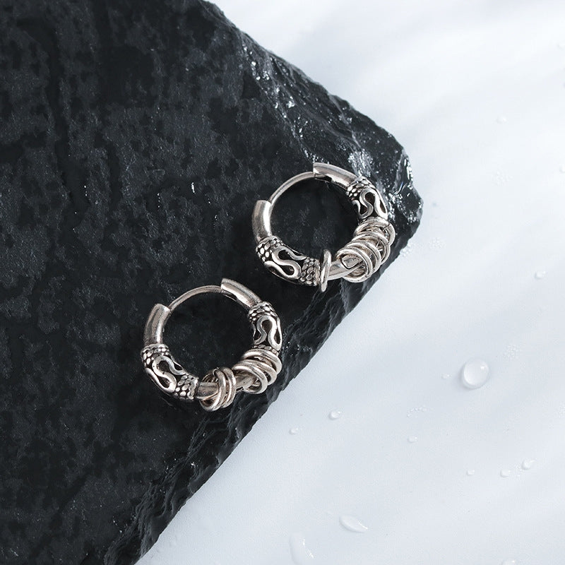 Retro Punk Geometric Copper Hoop Earrings for Men