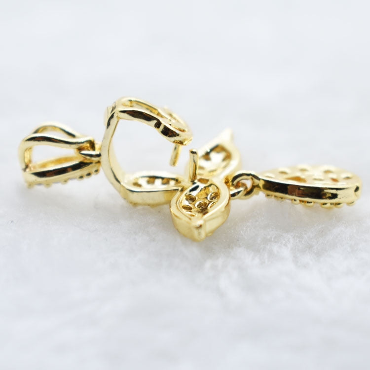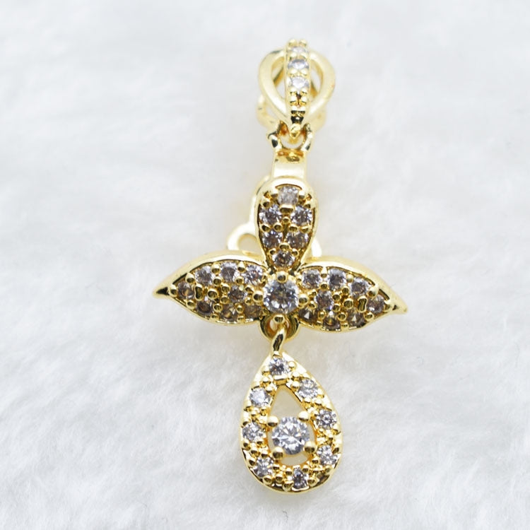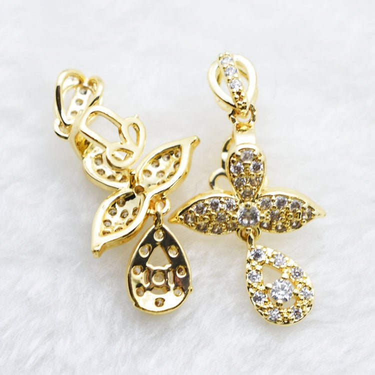 Copper Zircon Flower Pendant Hook Earring Findings 38mm*21mm