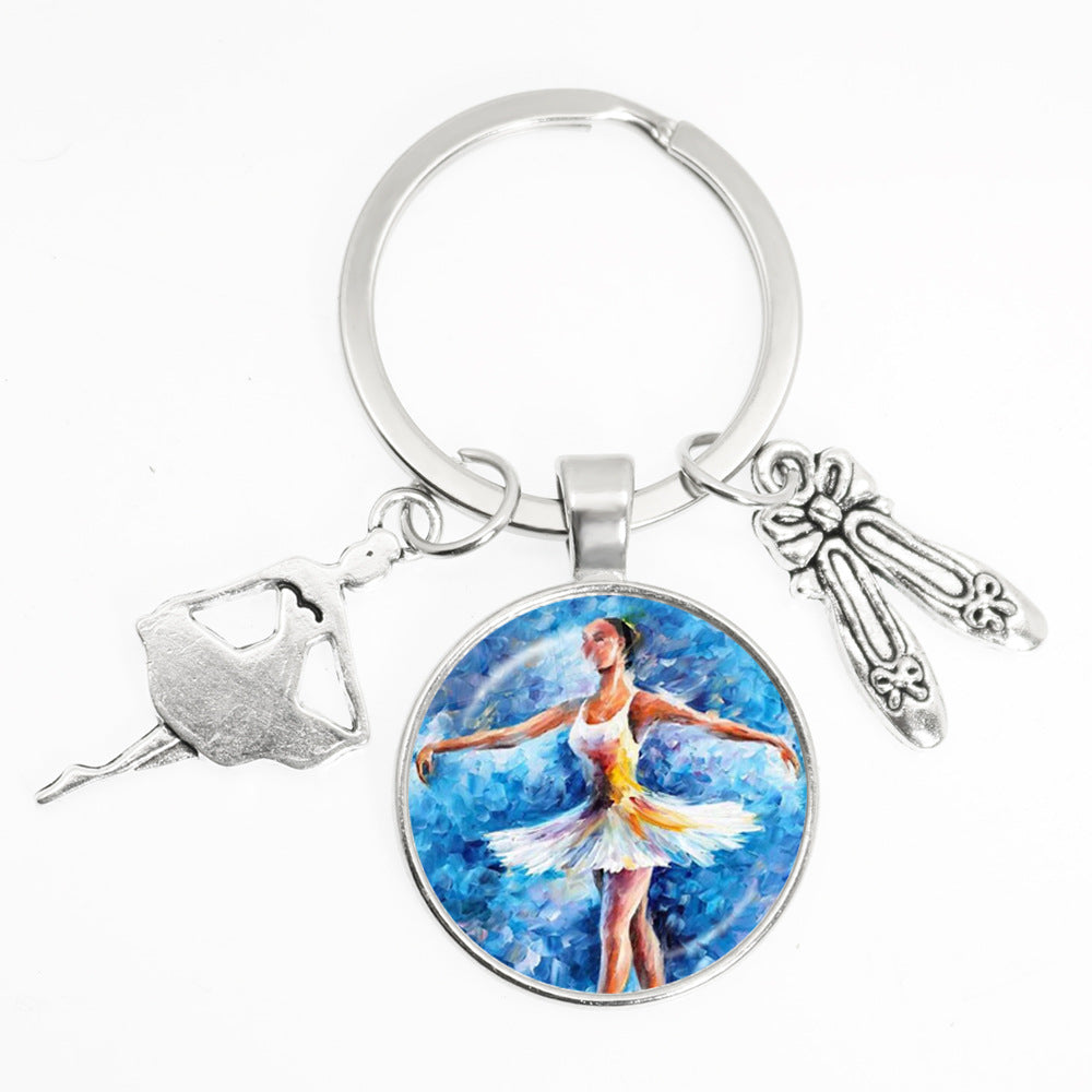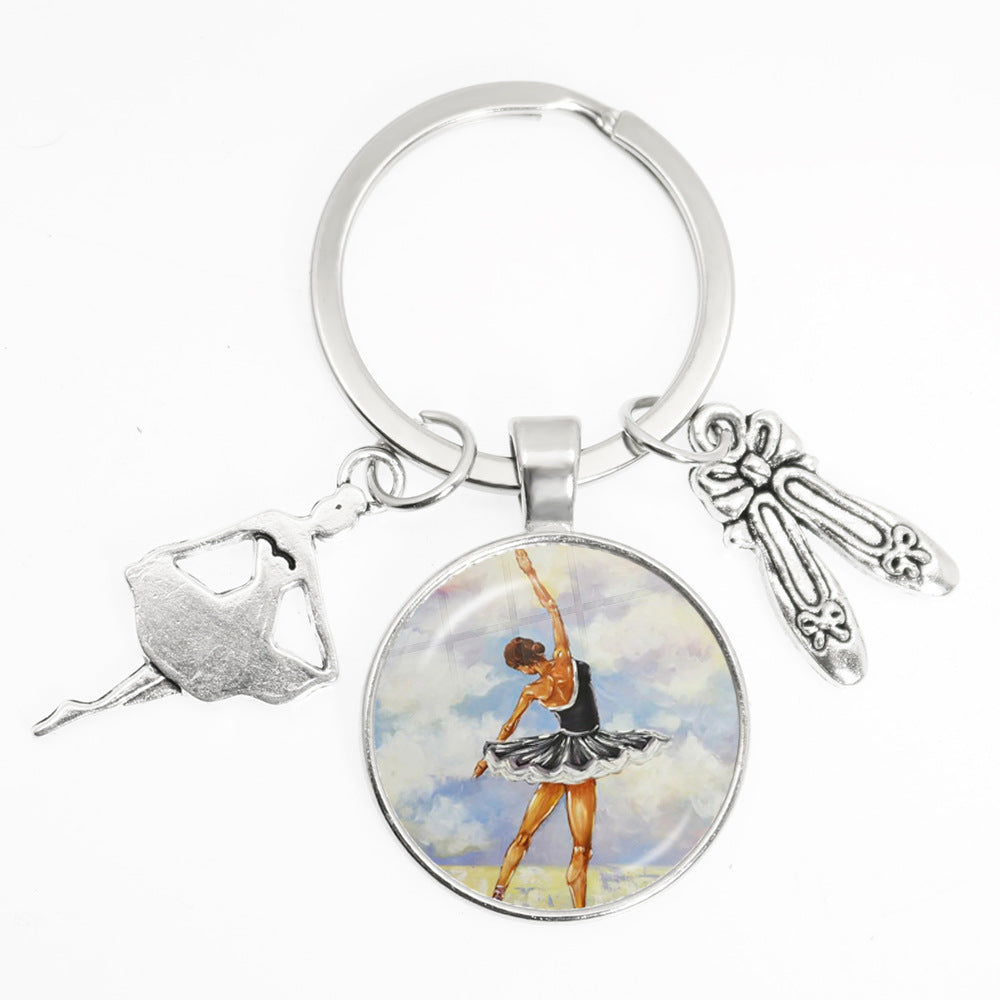 Artistic Ballet Dancer Round Alloy Metal Keychain Pendant