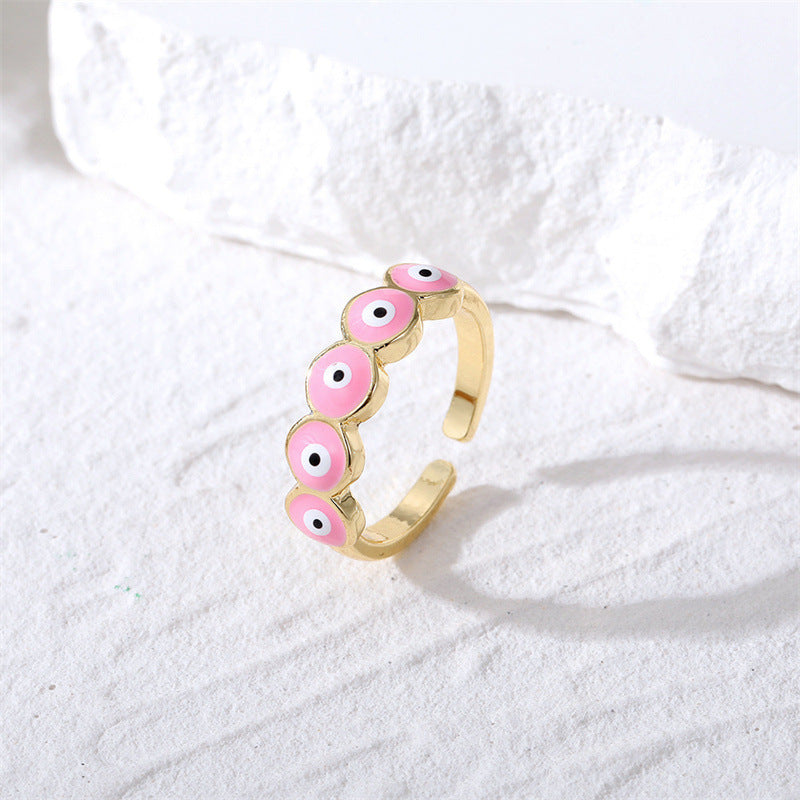 Casual Bohemian Evil Eye Alloy Enamel Women's Open Ring