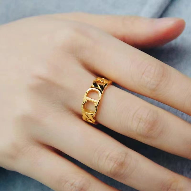Cute Fashion Letter Open Ring - Gold Plated Copper Statement Jewelry