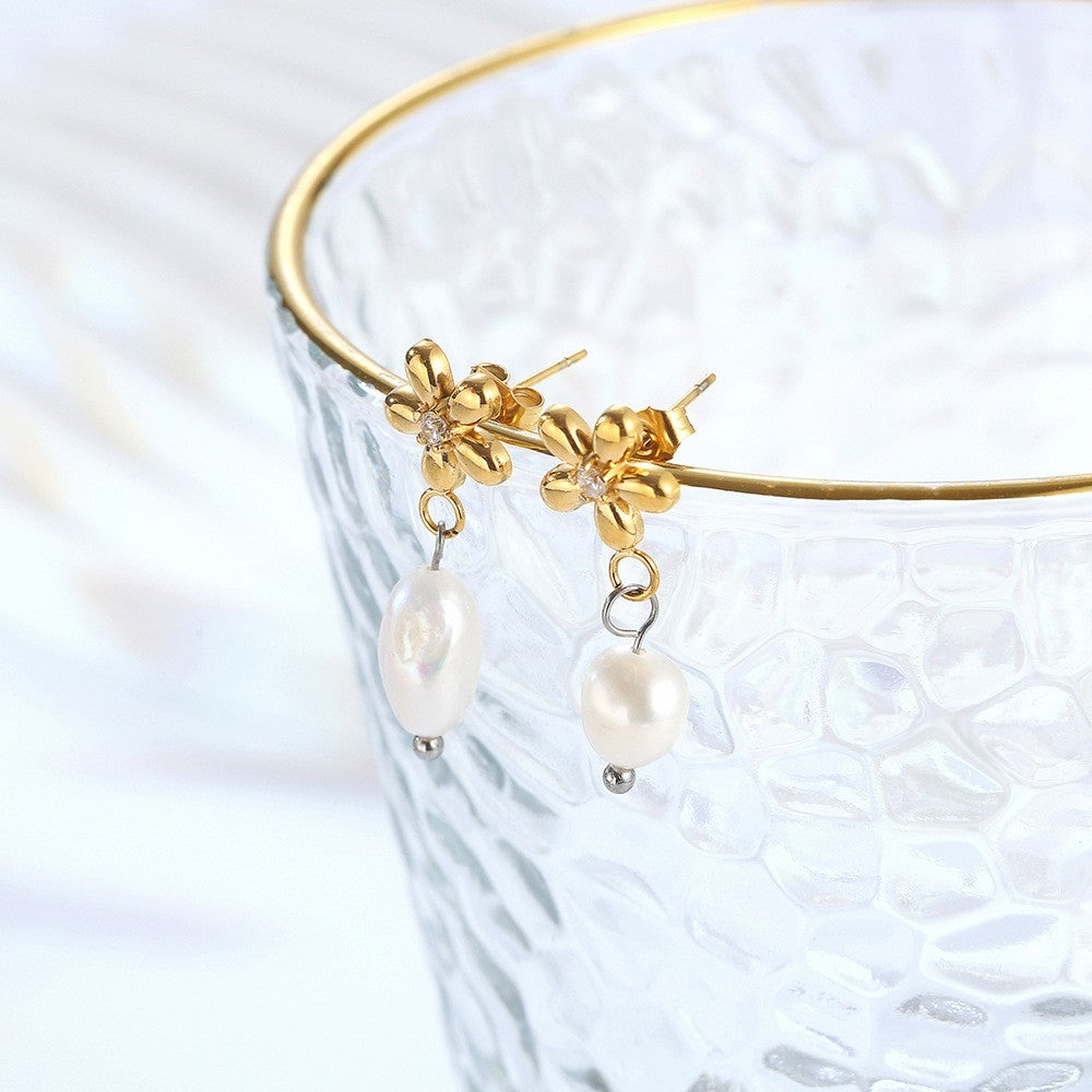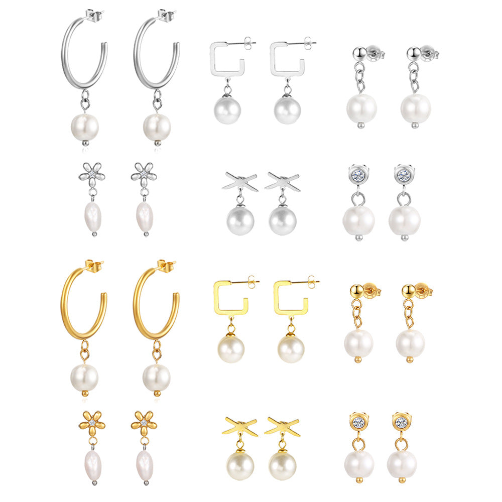 Elegant C Shape Pearl Rhinestone 18K Gold Plated Stainless Steel Drop Earrings