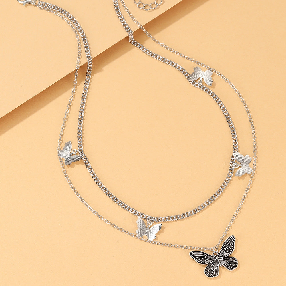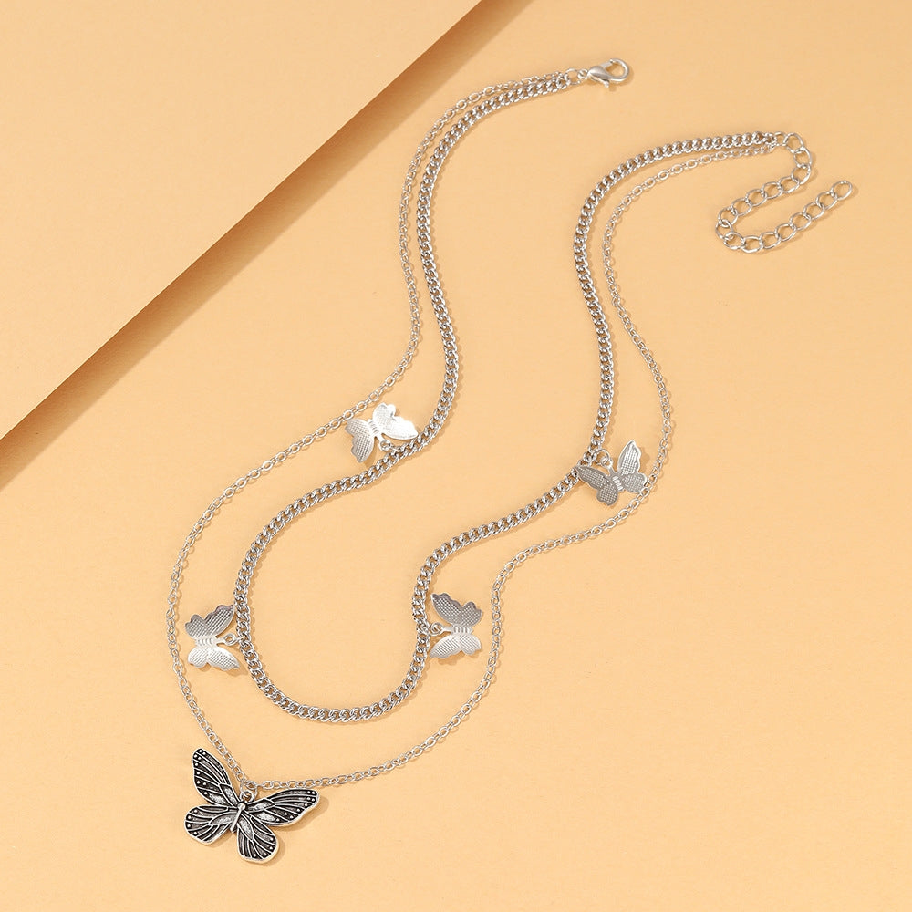 Fashion Butterfly Pendant Layered Alloy Necklace for Women