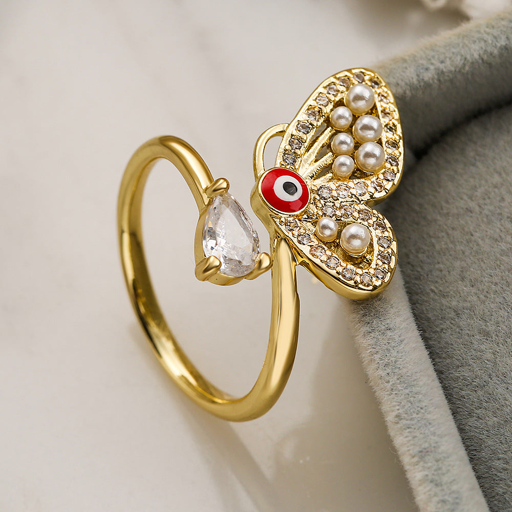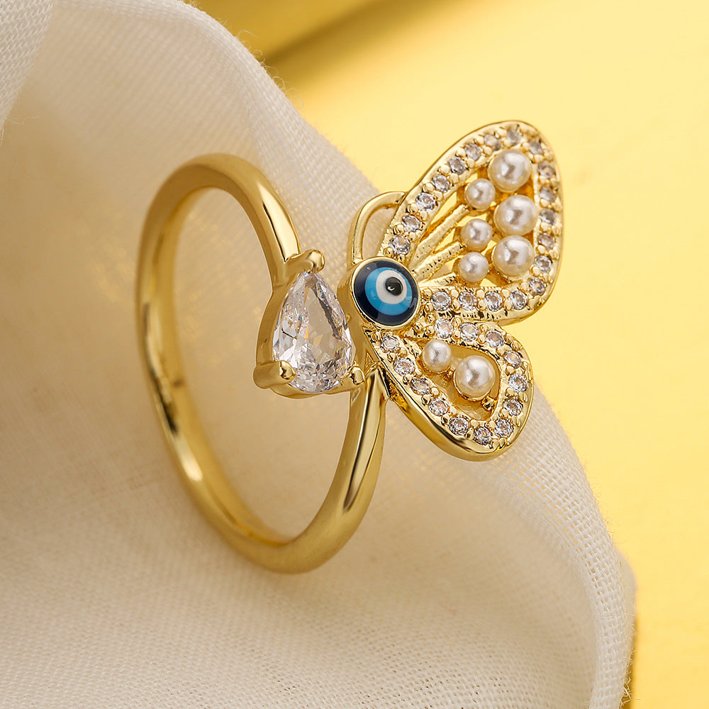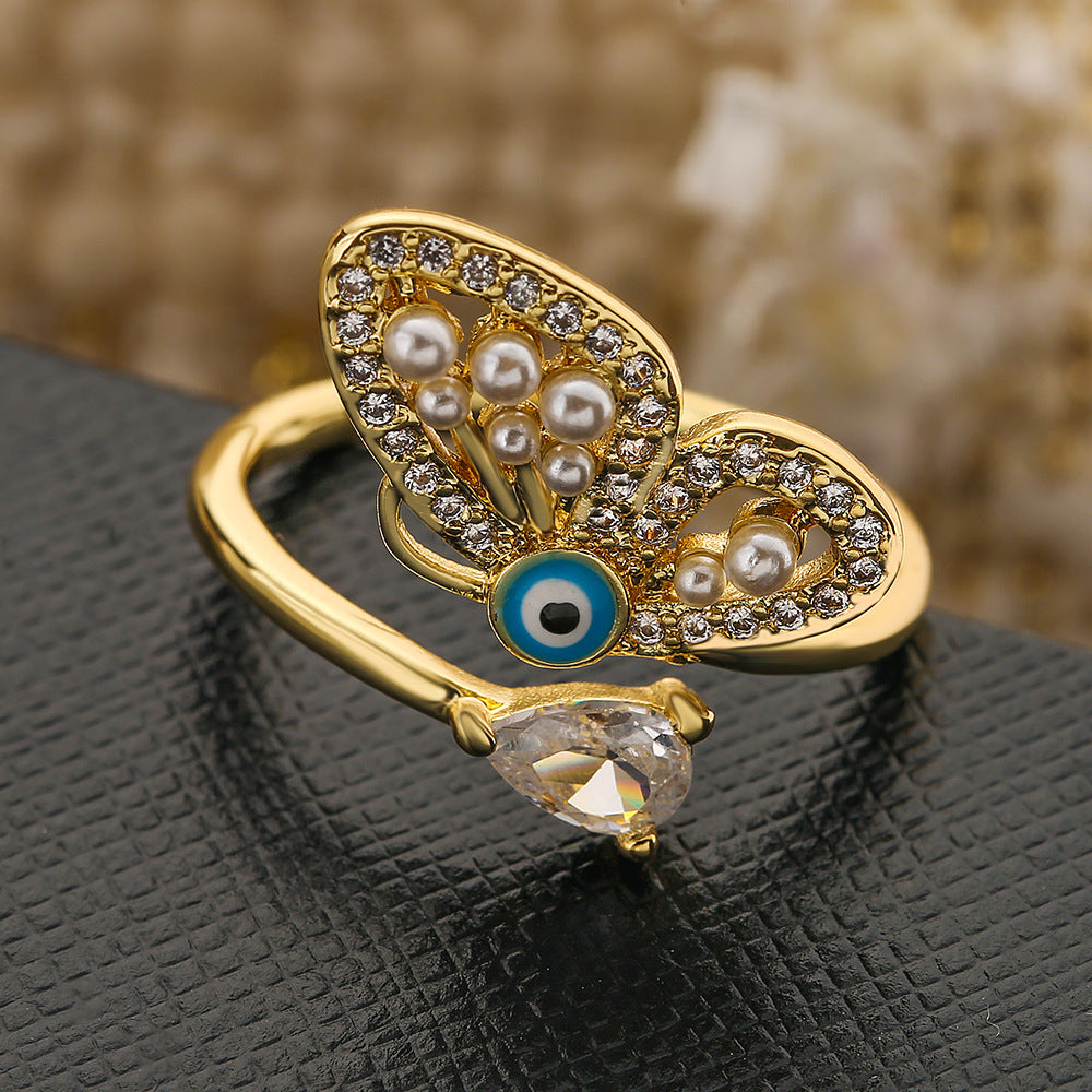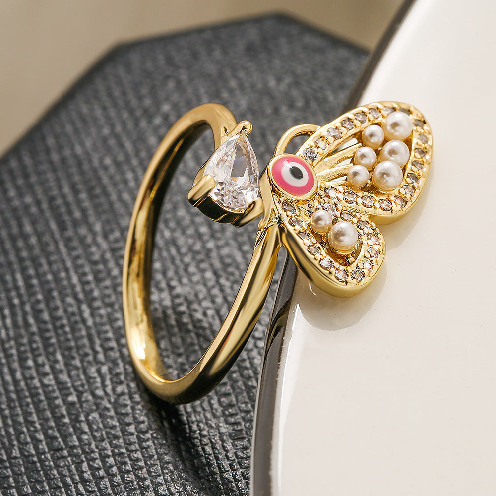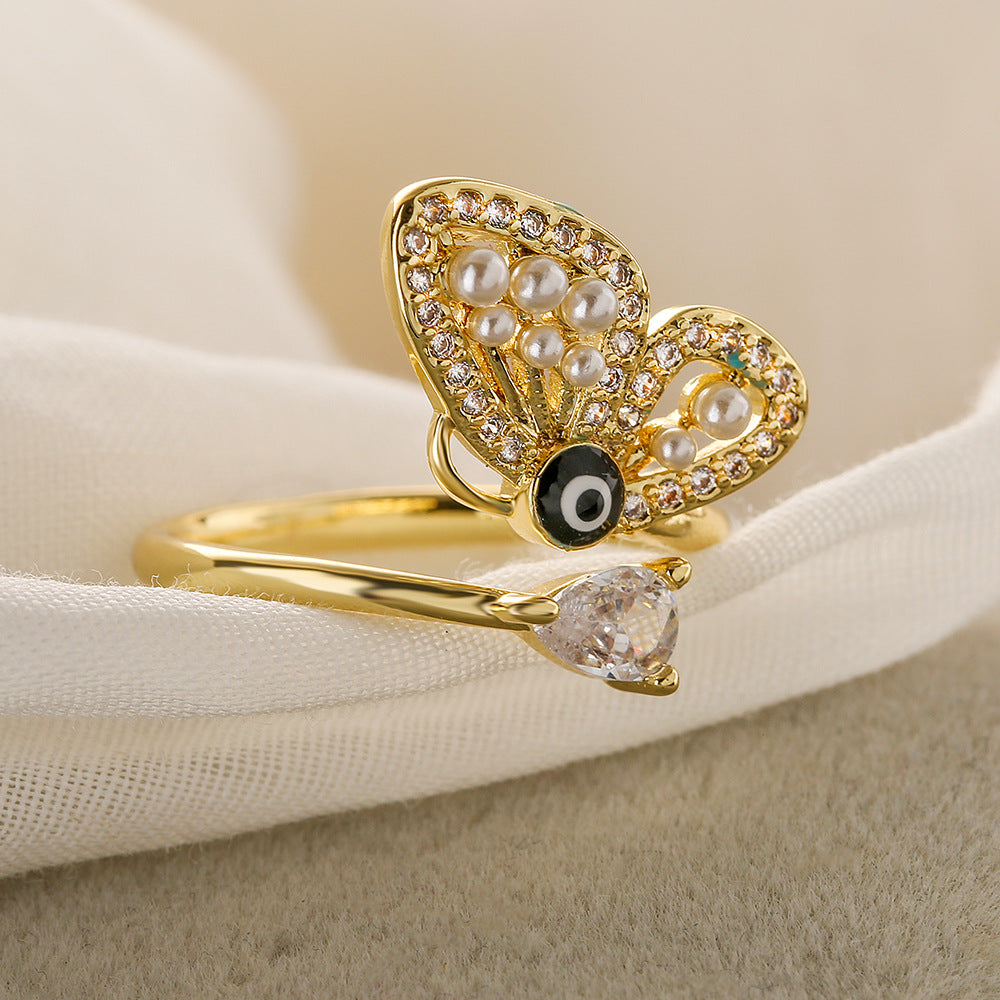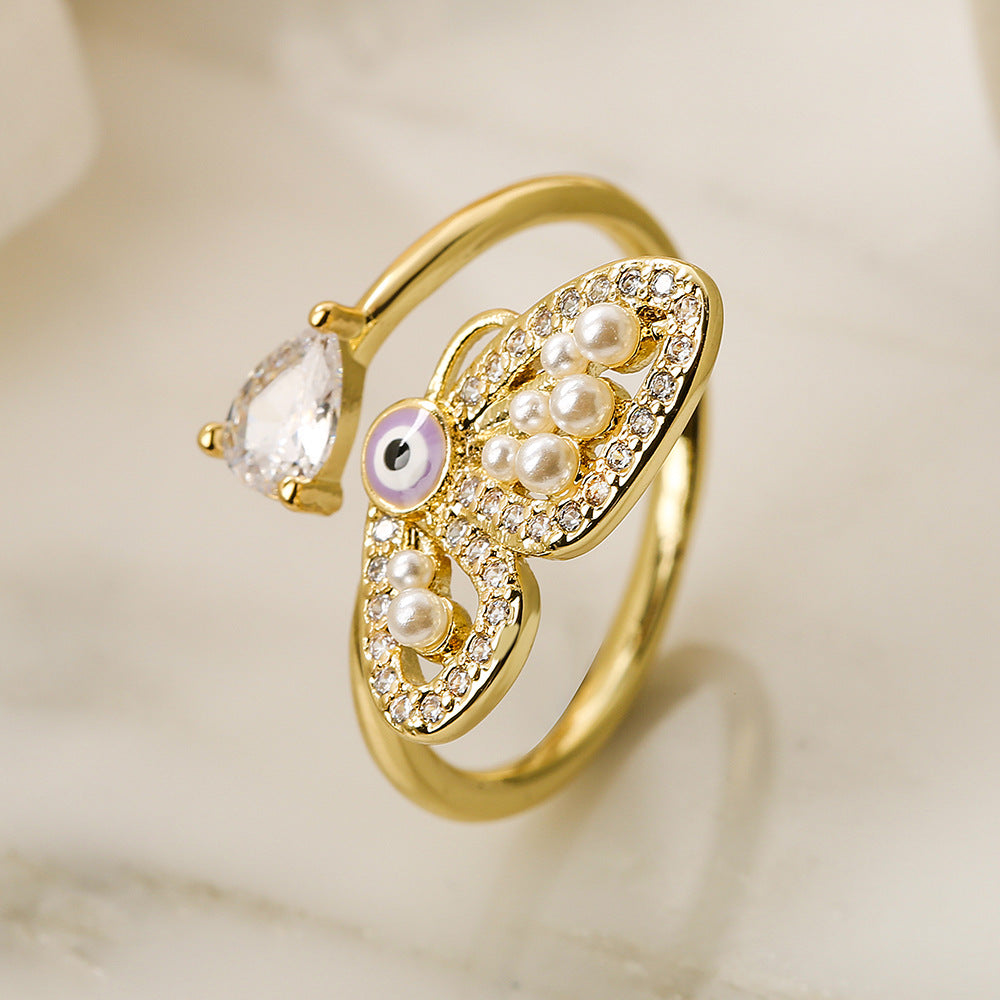 Fashion Butterfly Zircon Pearl Open Ring - Elegant Geometric Design