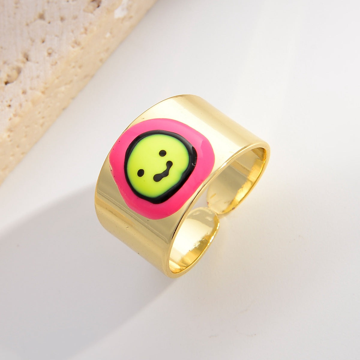 Fashion Devil's Eye Smiley Face Enamel Open Ring - Colorful Cartoon Graffiti Design