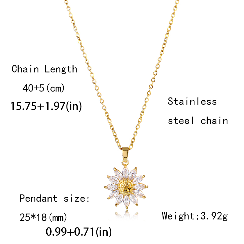 Fashion Sunflower Zircon Pendant Necklace - 18k Gold Plated Stainless Steel