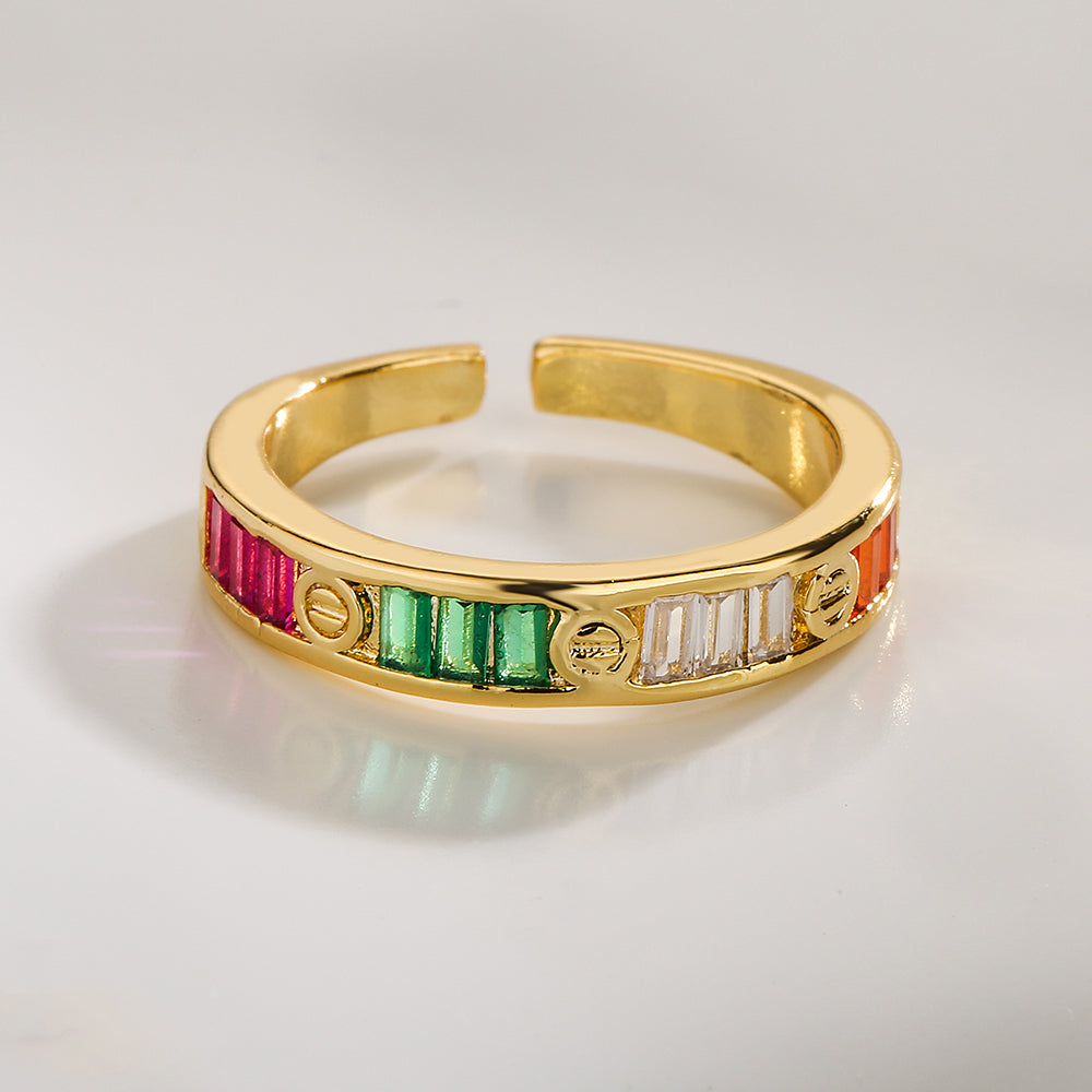 1 Piece Geometric 18k Gold Plated Copper Ring with Colorful Zircon