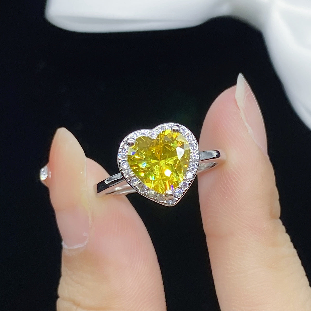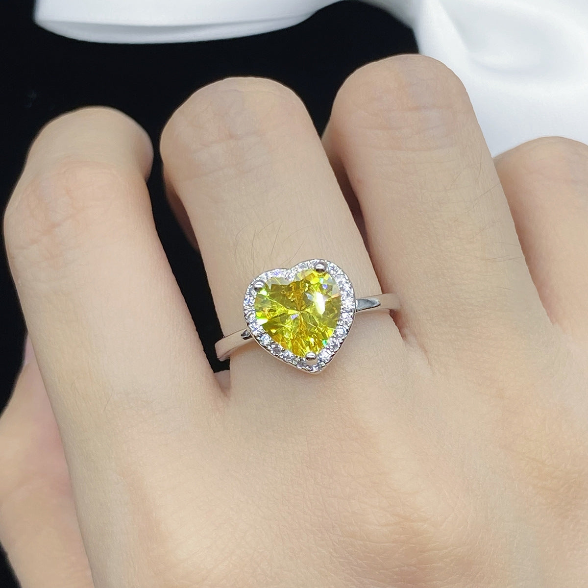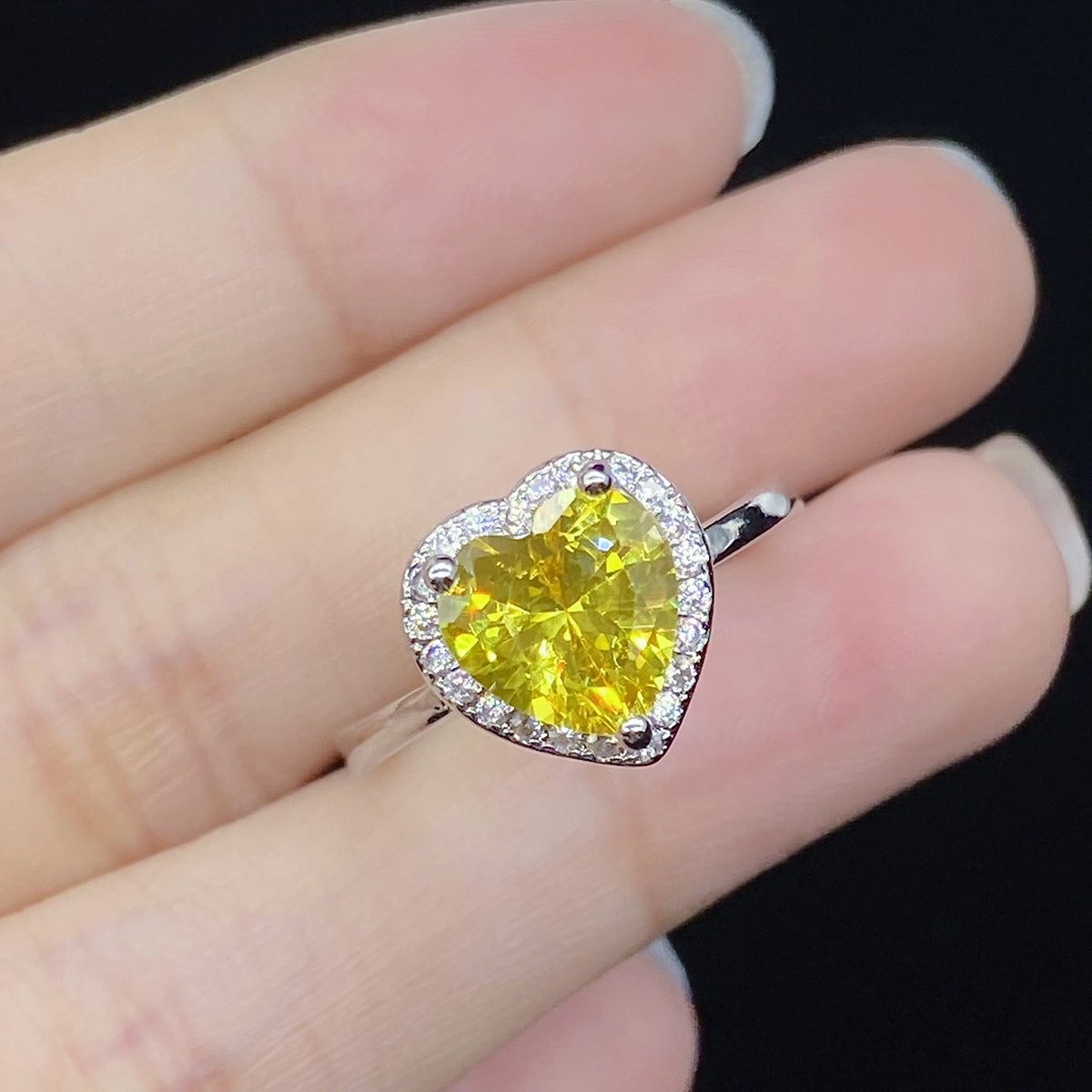 Fashion Heart Shape Yellow Crystal Adjustable Women's Ring