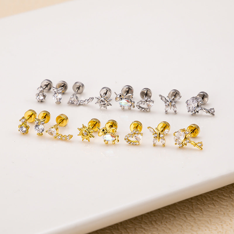 Fashion Heart Owl & Butterfly Zircon Stainless Steel Ear Studs