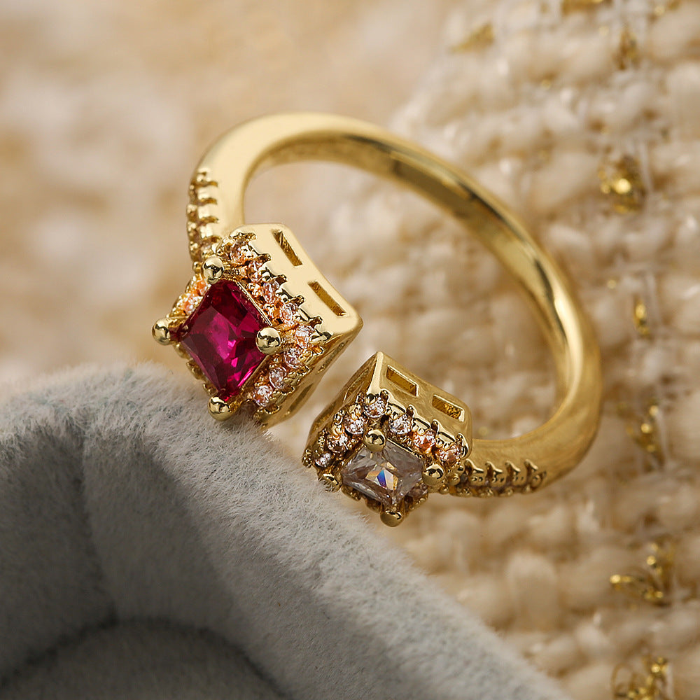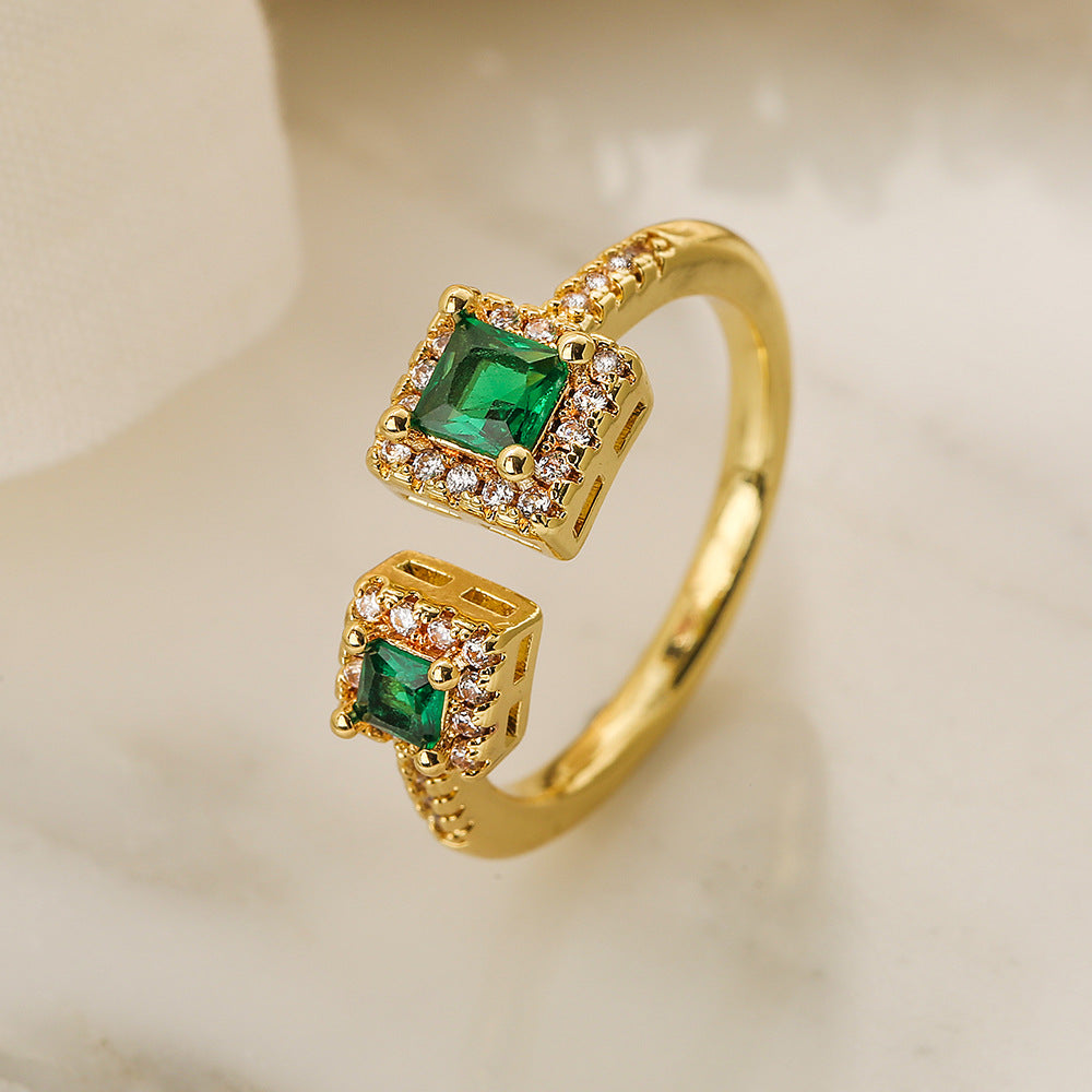 Fashion Geometric Zircon Open Ring - Vintage Gold Plated Copper Design