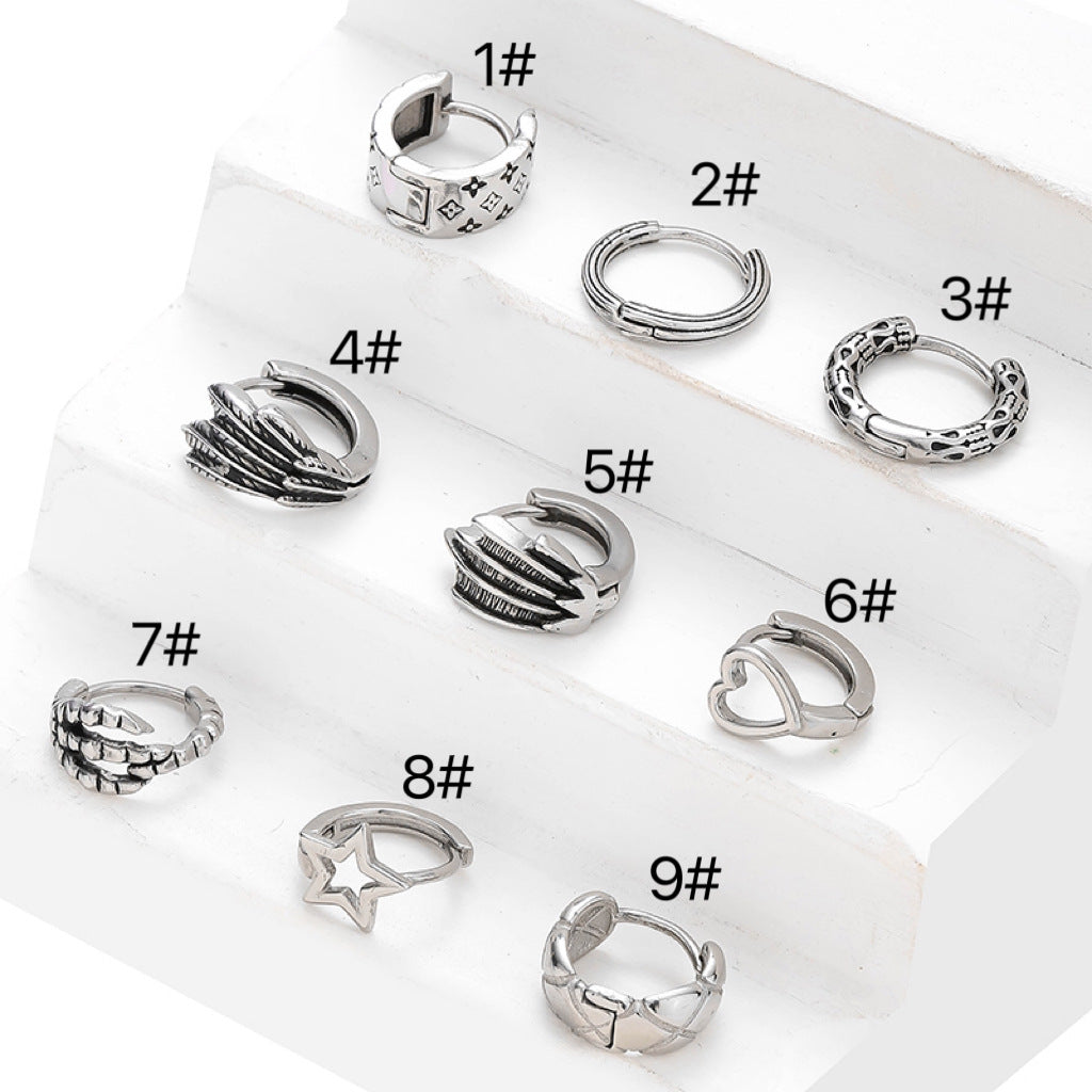Gothic Four Leaf Clover Skull Stainless Steel Earrings for Men