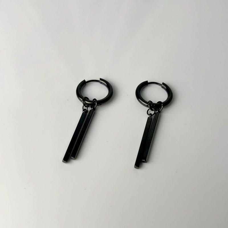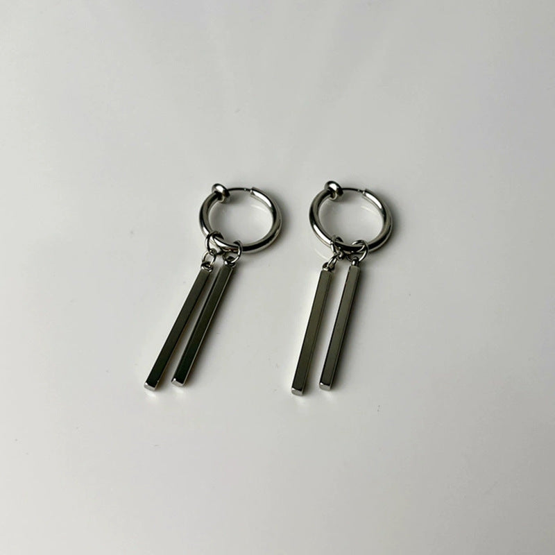 Geometric Stainless Steel Men's Drop Earrings - Minimalist Design