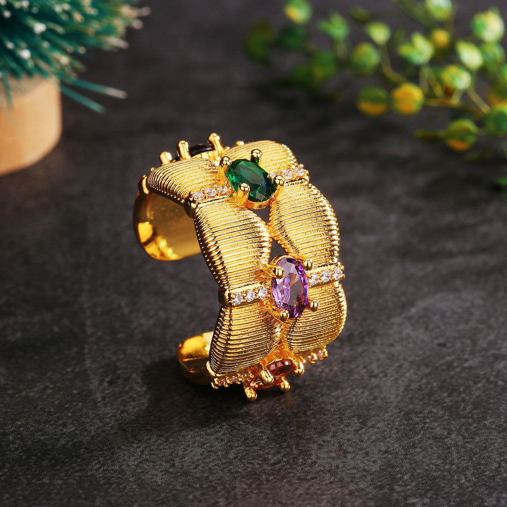 Retro Geometric Copper Inlay Zircon Square Open Ring