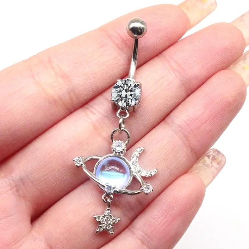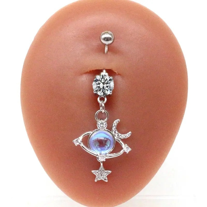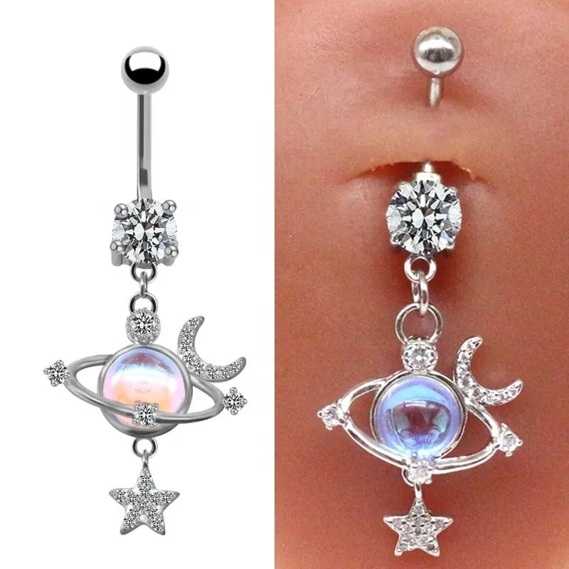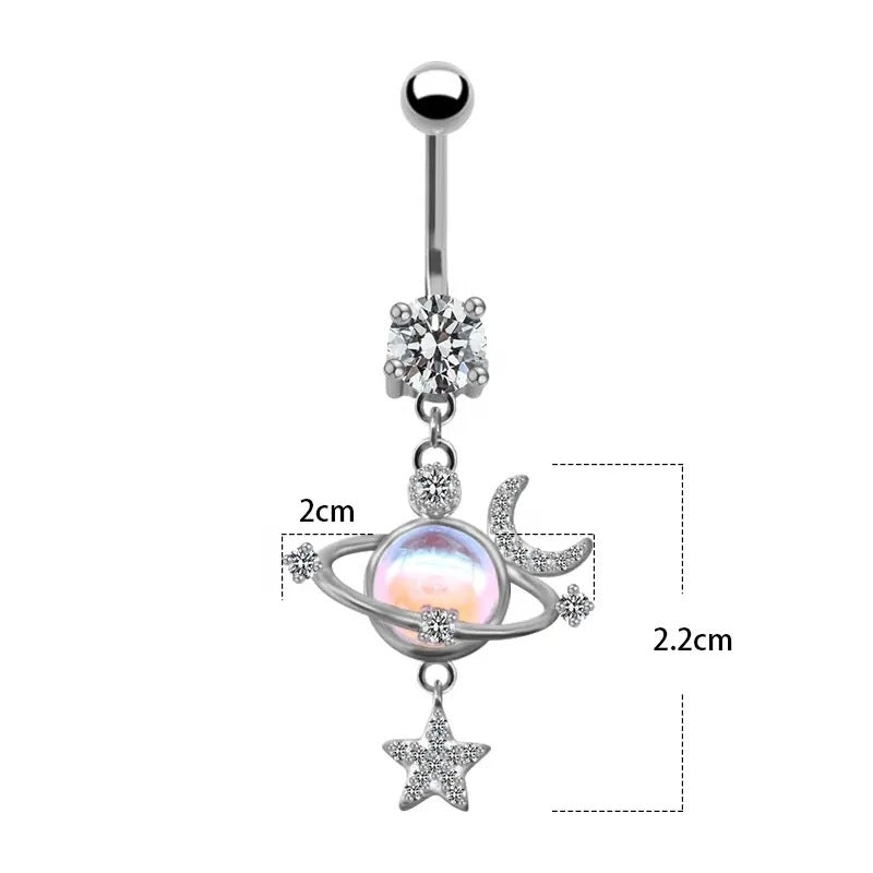 1 Piece Celestial Star Moon Planet Stainless Steel Zircon Belly Ring
