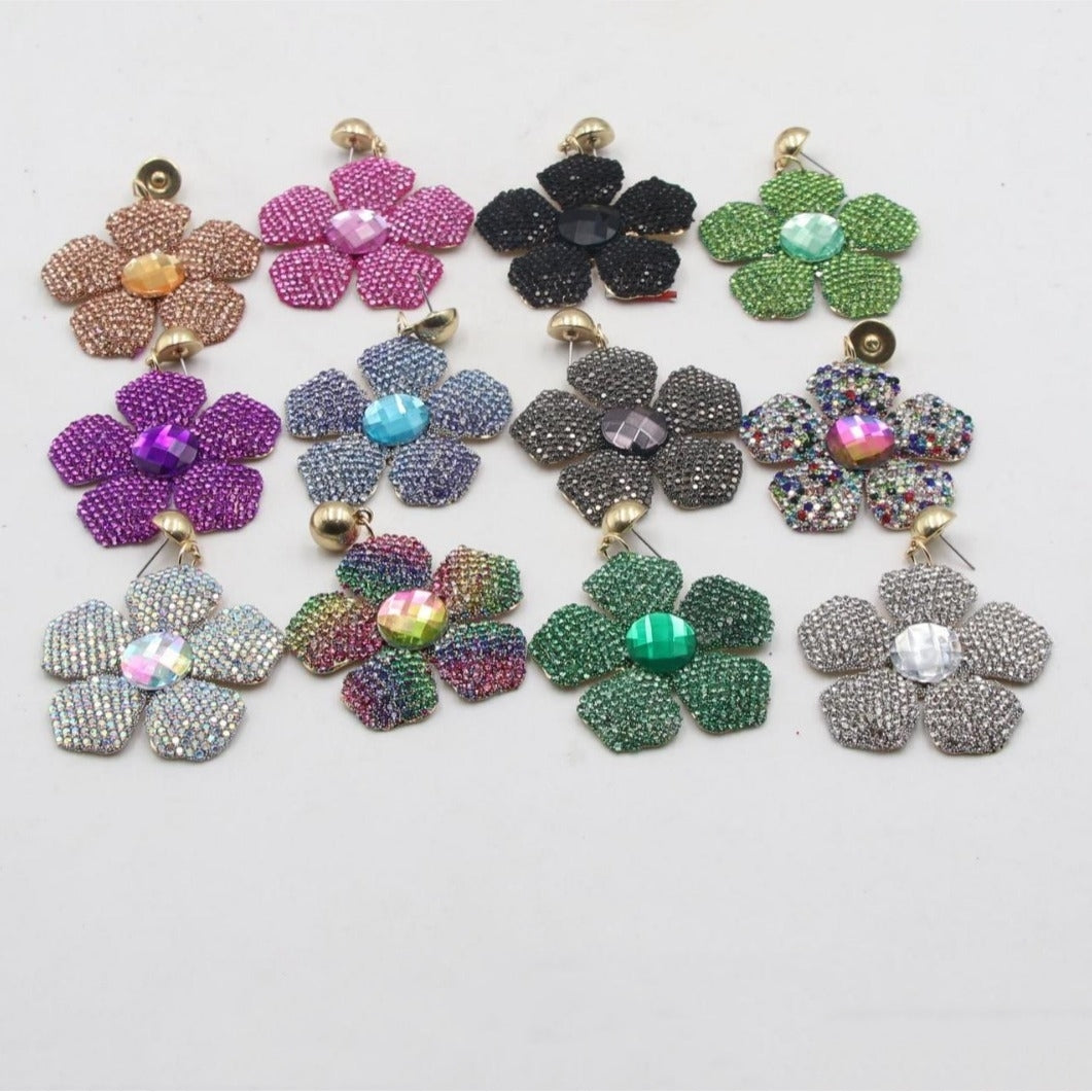 Simple Classic Flower Inlay Rhinestone and Pearl Drop Earrings