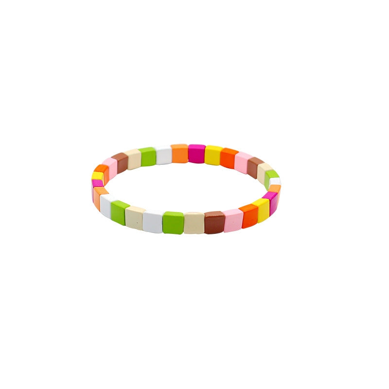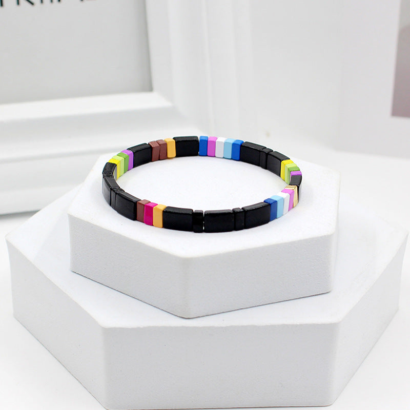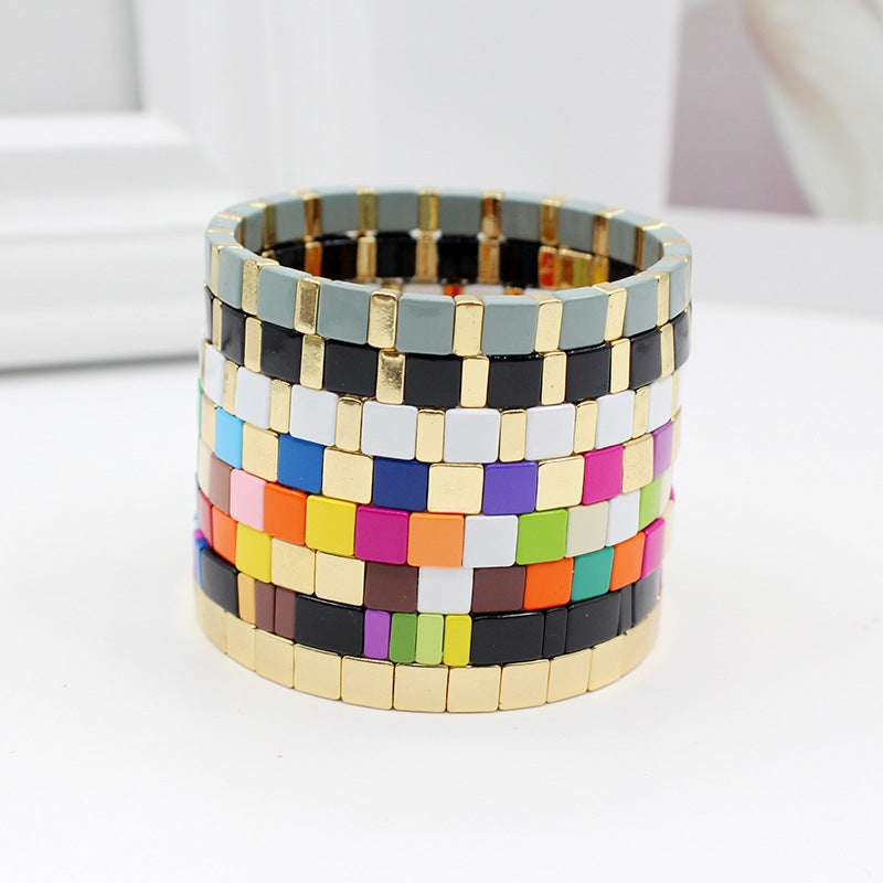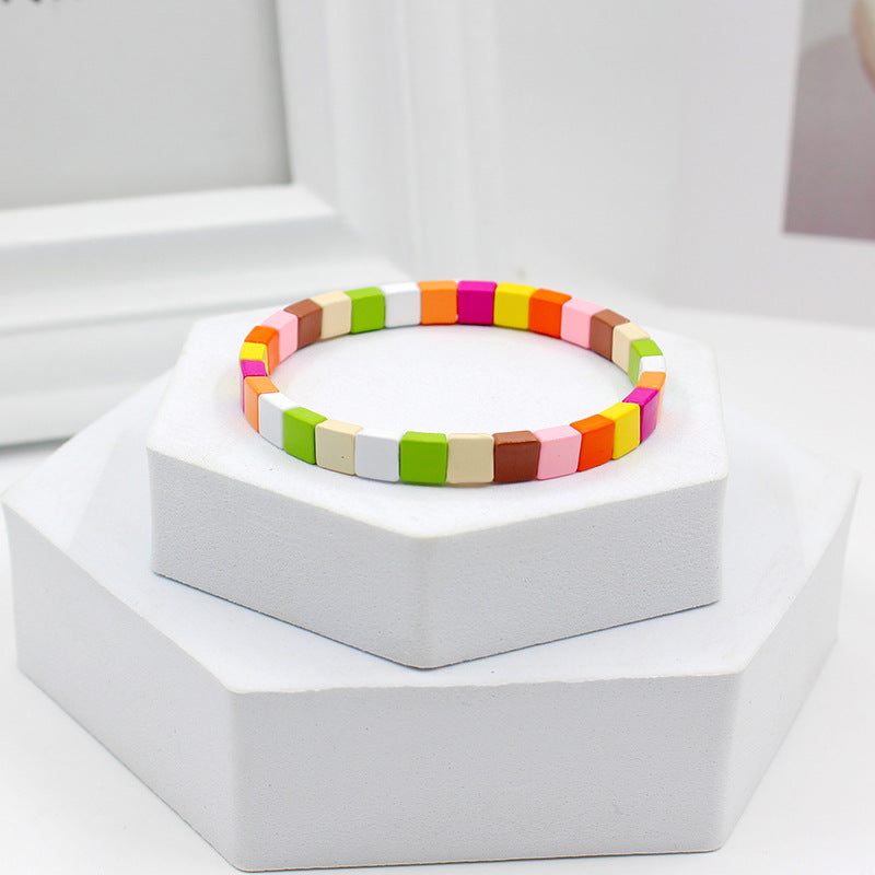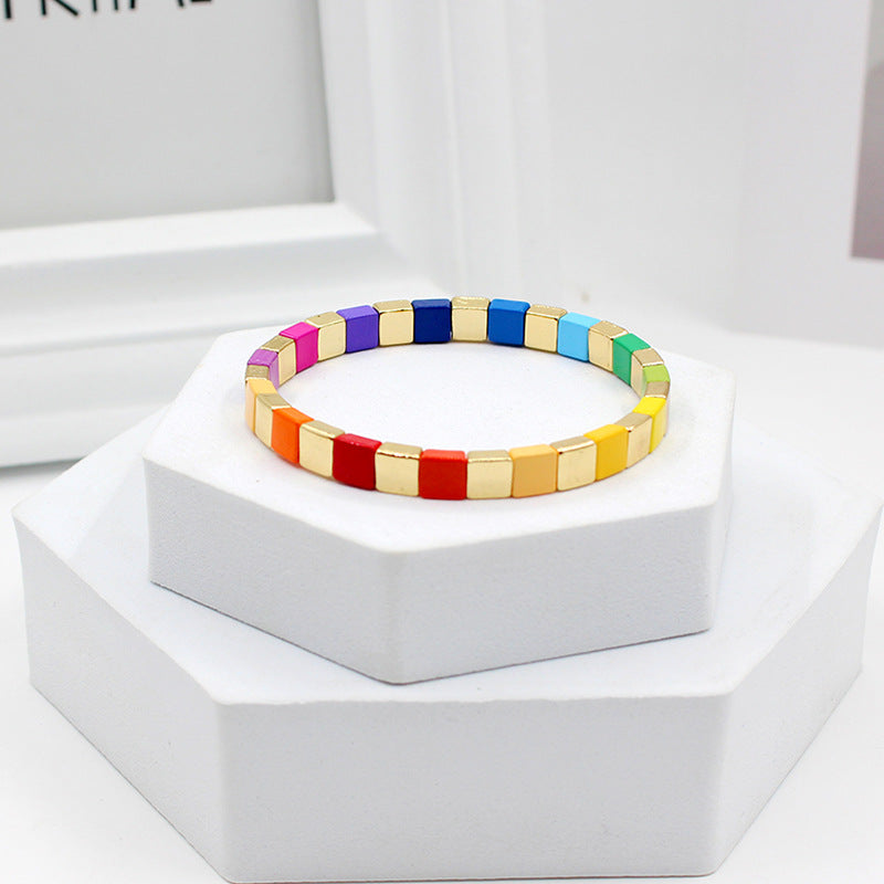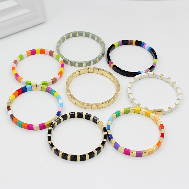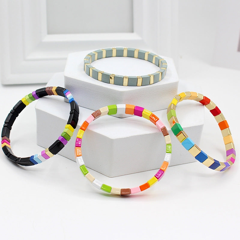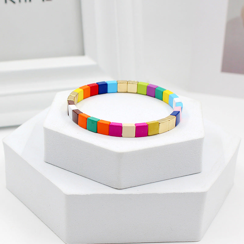 Colorful Square Alloy Enamel Beaded Women's Bohemian Stretch Bracelet