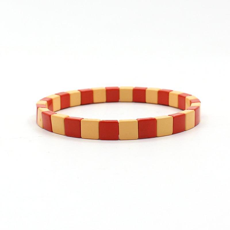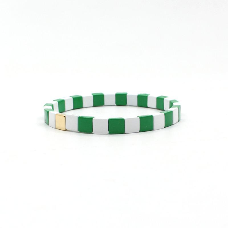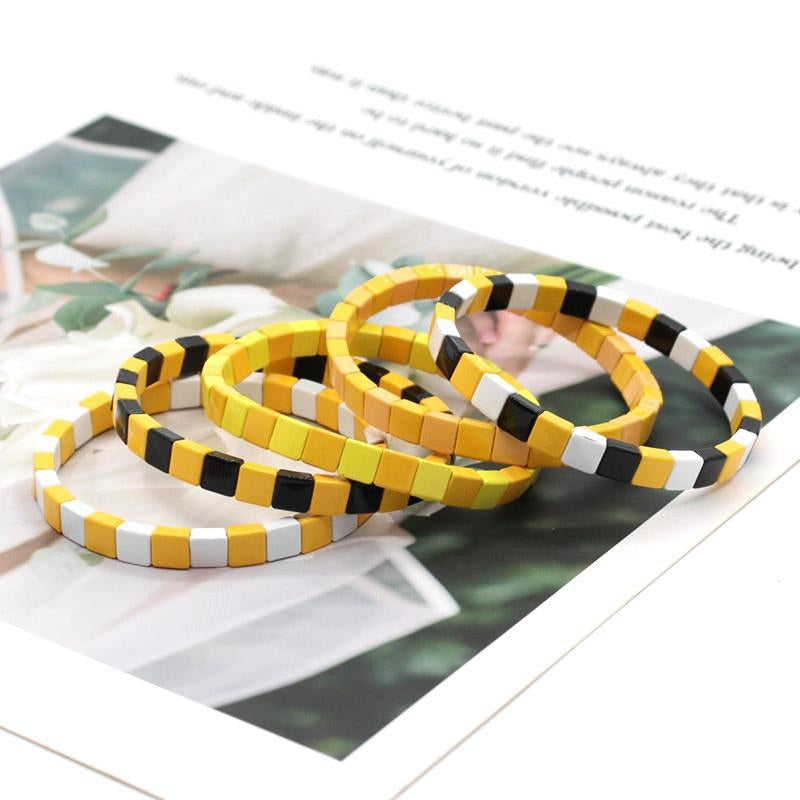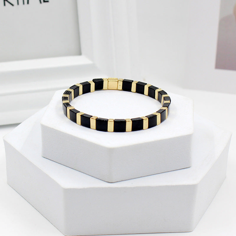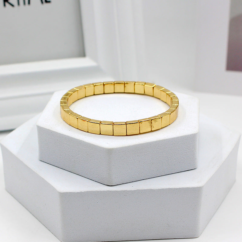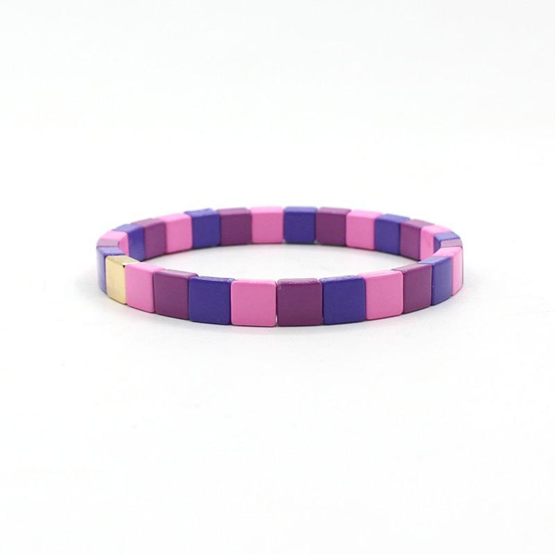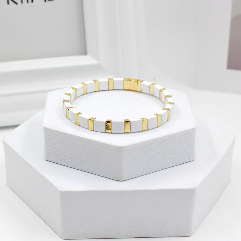Colorful Square Alloy Enamel Beaded Women's Bohemian Stretch Bracelet