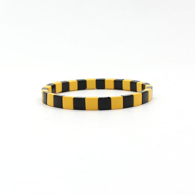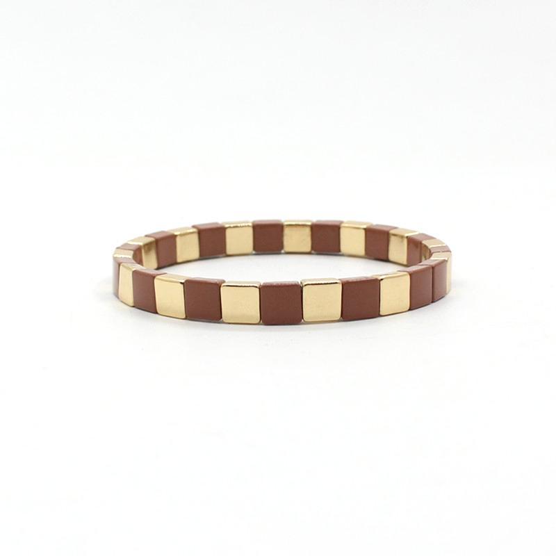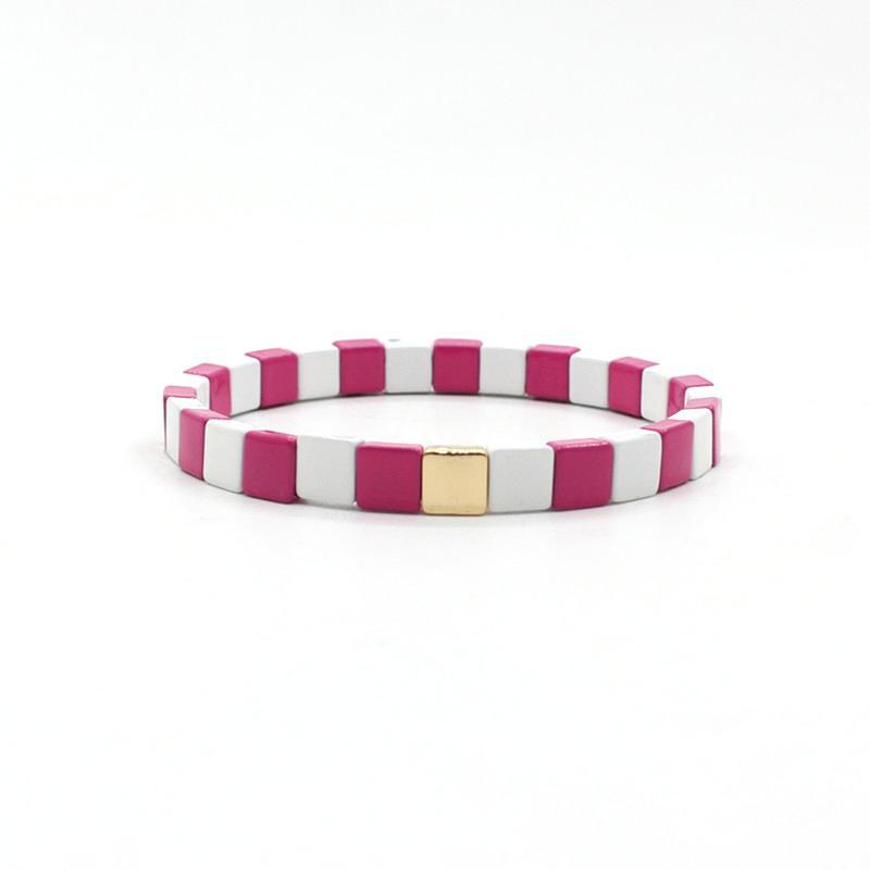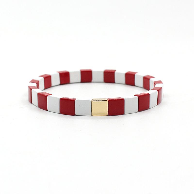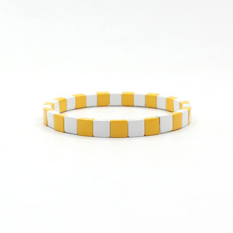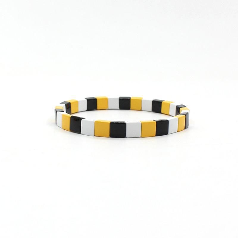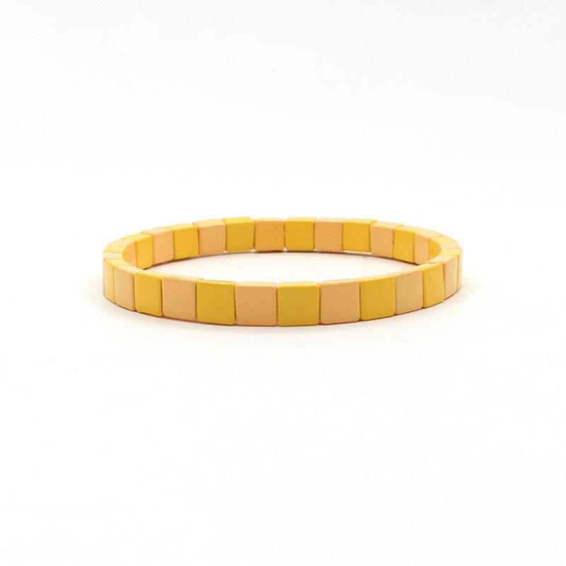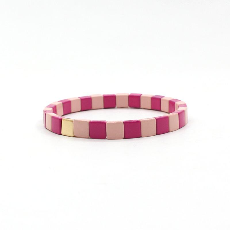 Colorful Square Alloy Enamel Beaded Women's Bohemian Stretch Bracelet