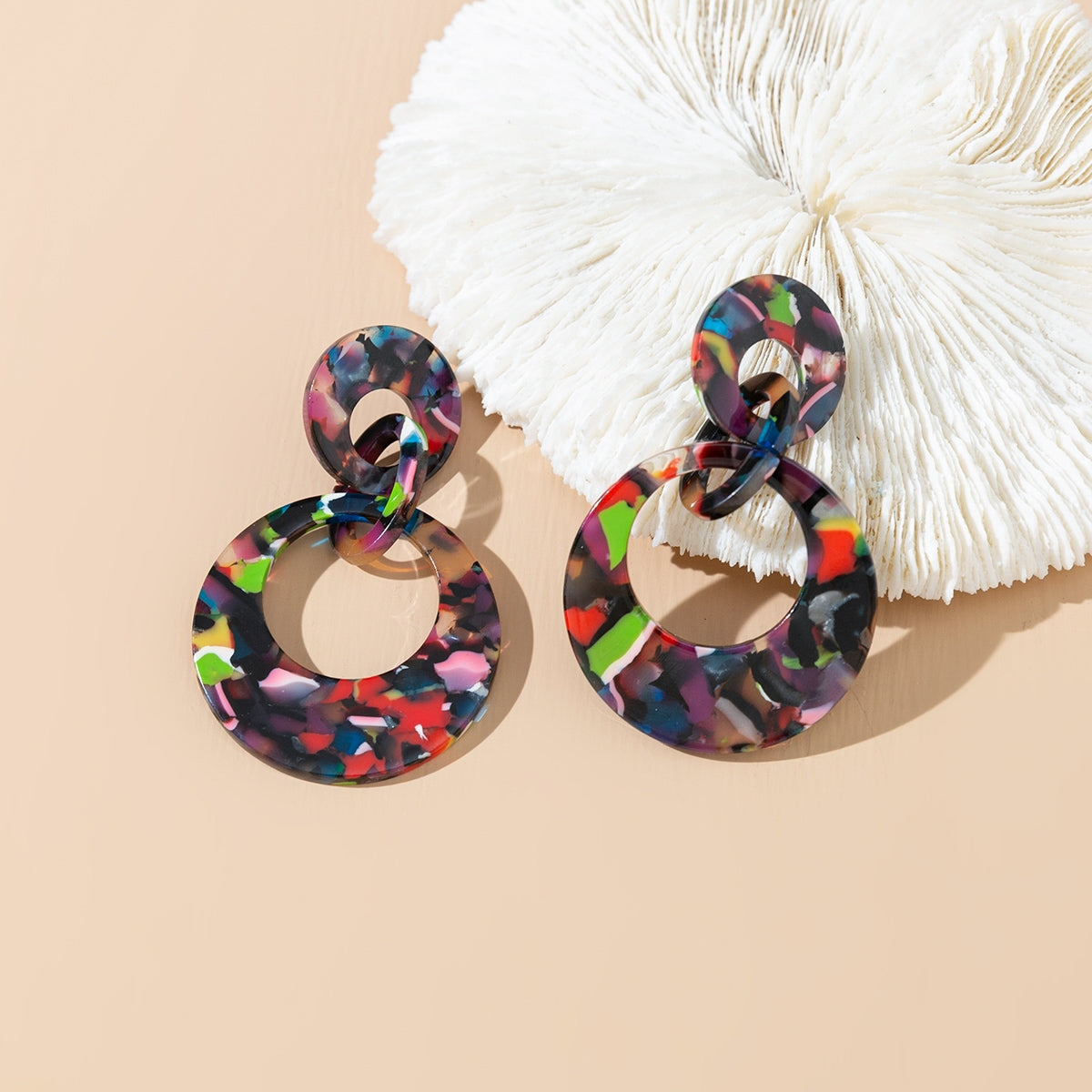 Simple Retro Gold Plated Acrylic Circle Drop Earrings
