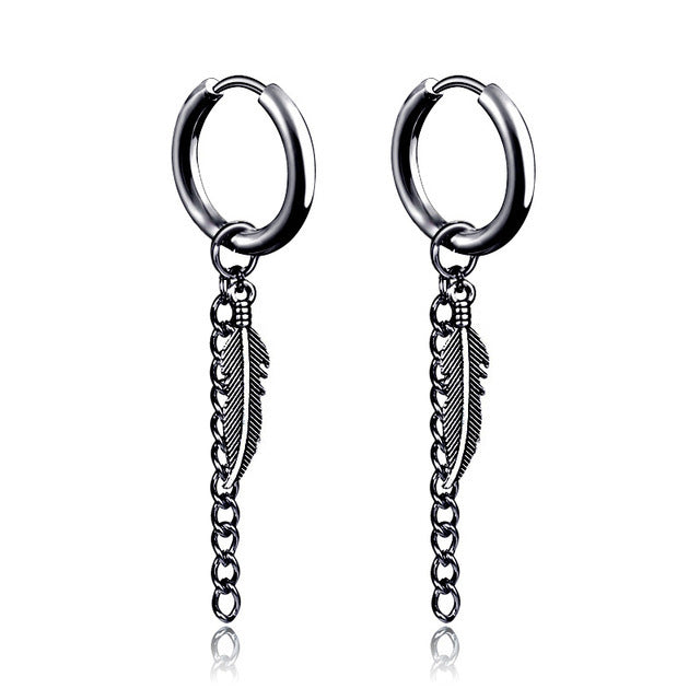 Geometric Stainless Steel and Black Acrylic Cross Stud Earrings