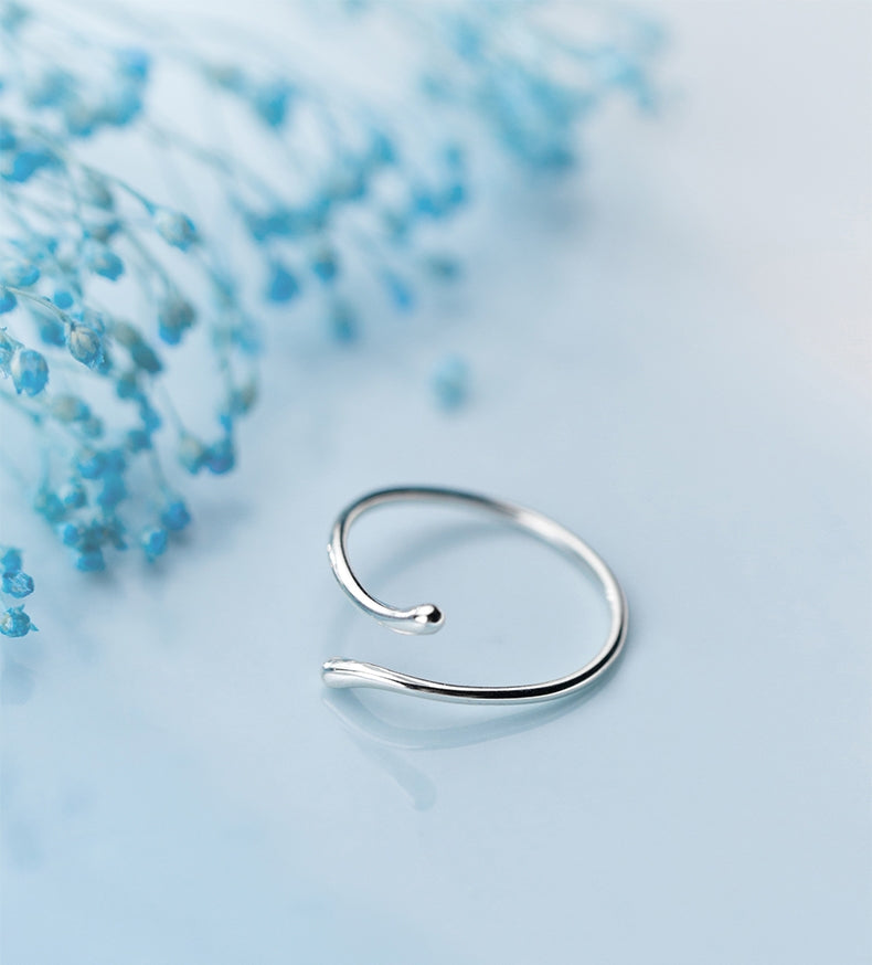 Simple Style Solid Color Sterling Silver Adjustable Open Ring