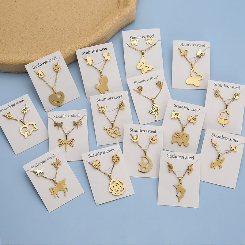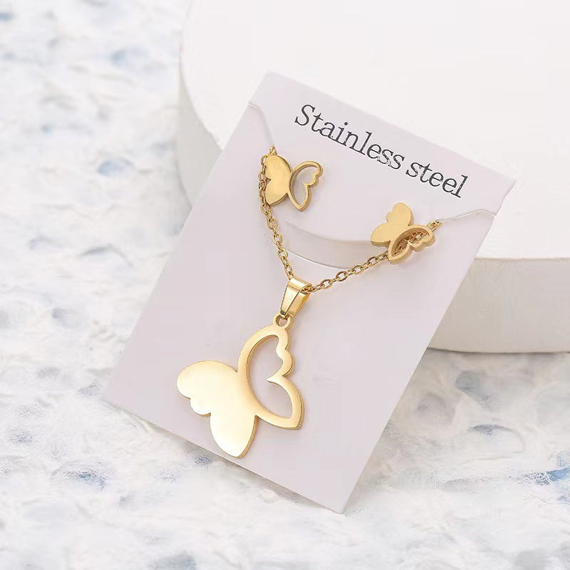 Simple Star and Butterfly Stainless Steel Jewelry Set for Women and Men