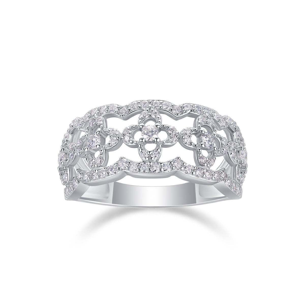 Sterling Silver White Gold Plated Moissanite Ring Set