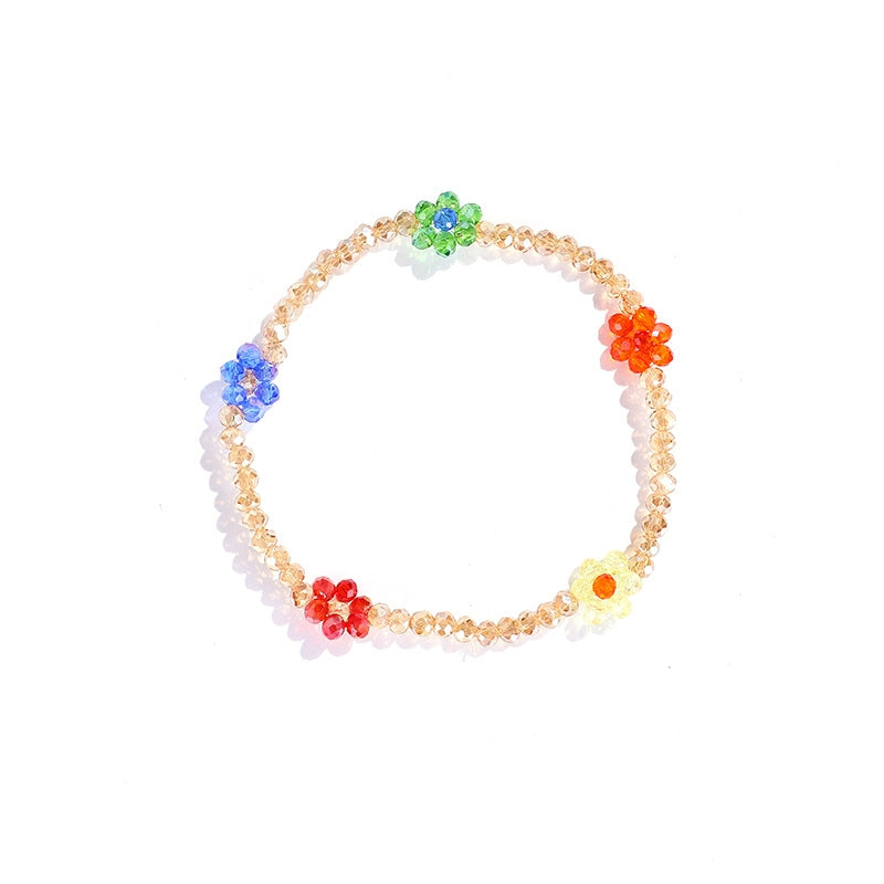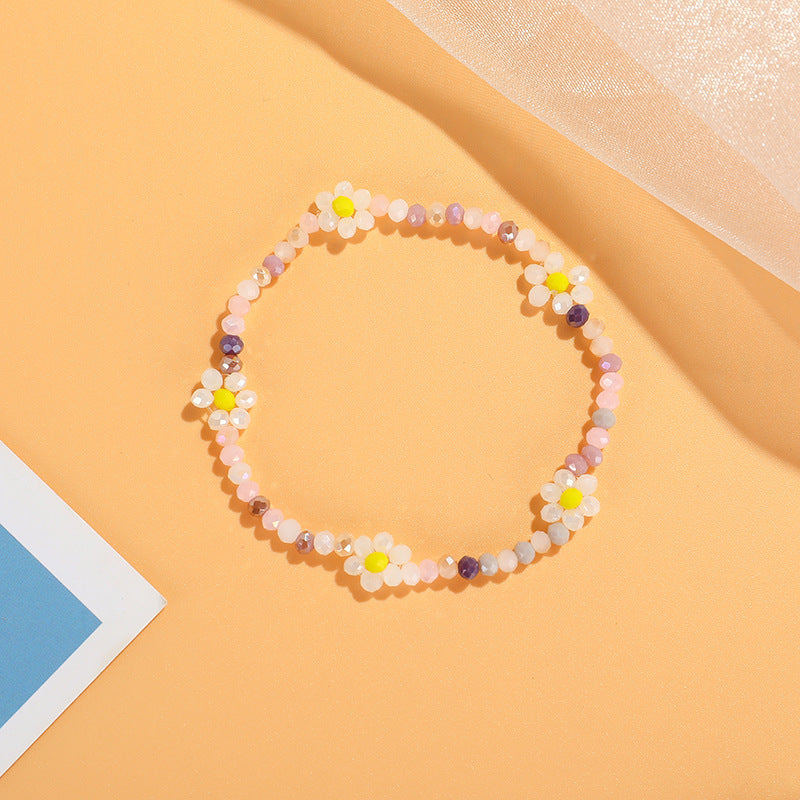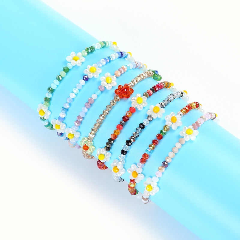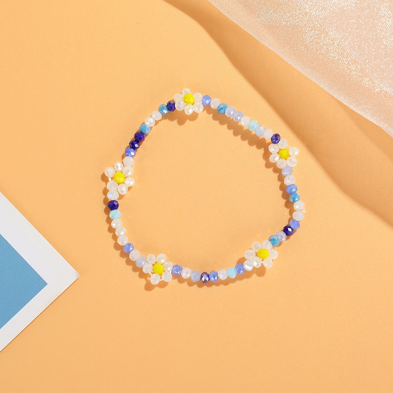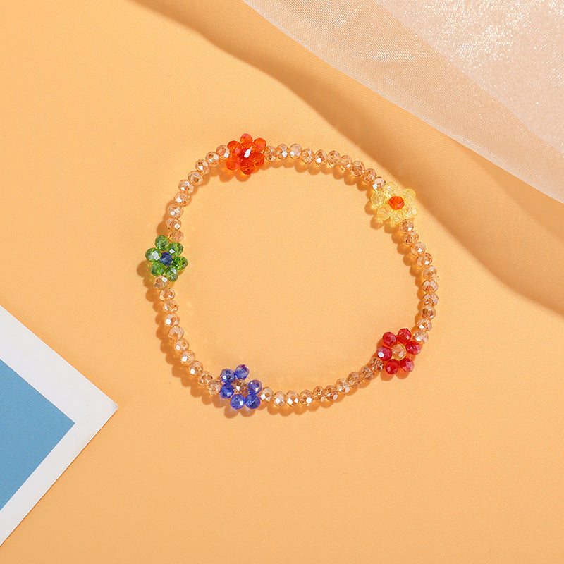 Vacation Floral Crystal Beaded Women's Elastic Bracelet