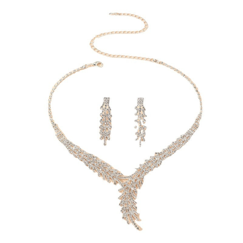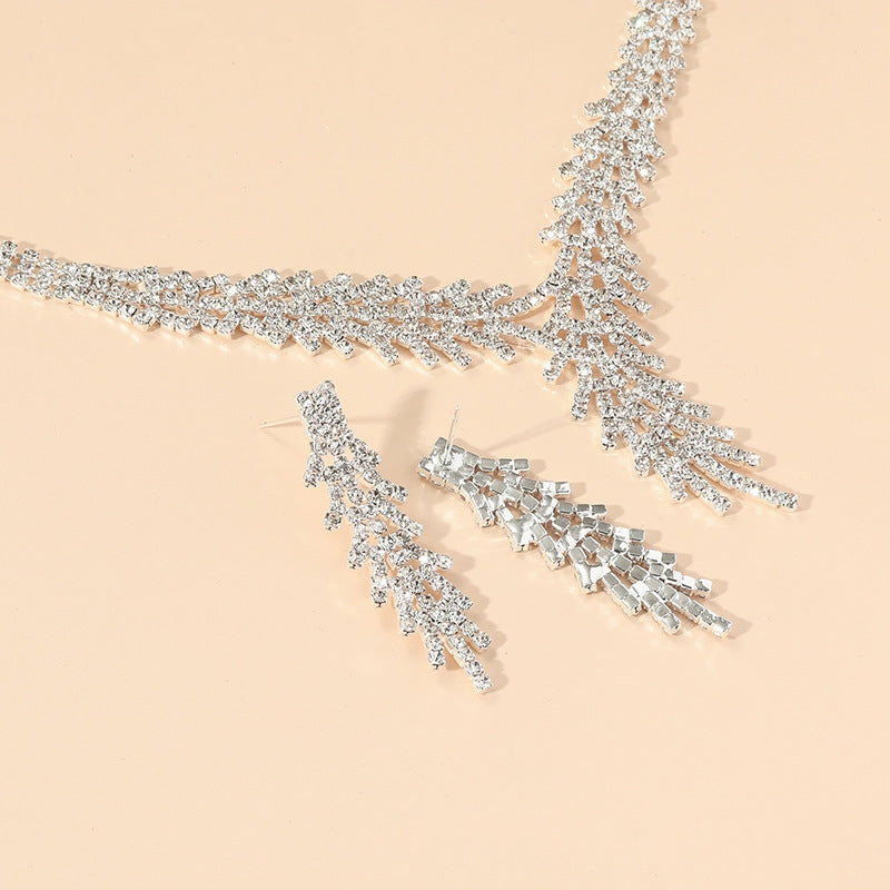 Fashion Geometric Rhinestone Inlay Copper Necklace and Earring Set for Women