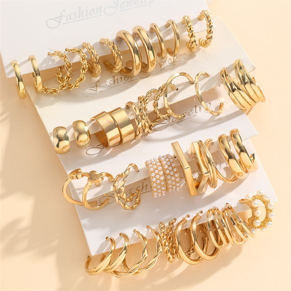 1 Set Minimalist Alloy Gem Drop Earrings & 24 Pairs Twisted Metal Hoop Earrings Set