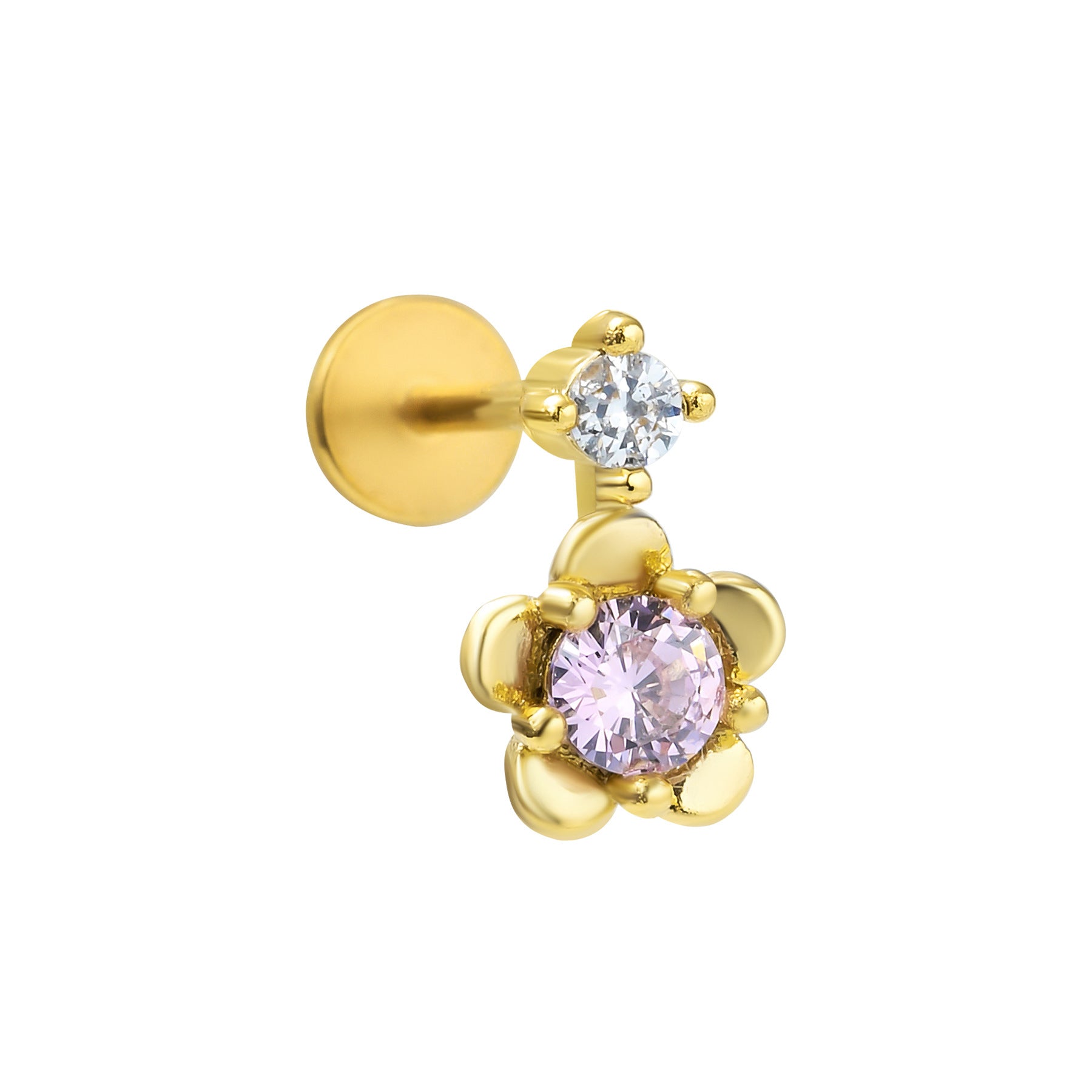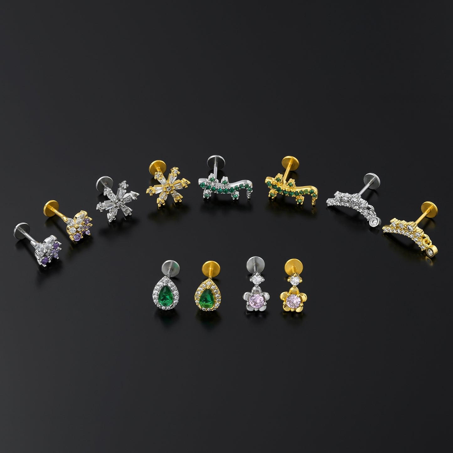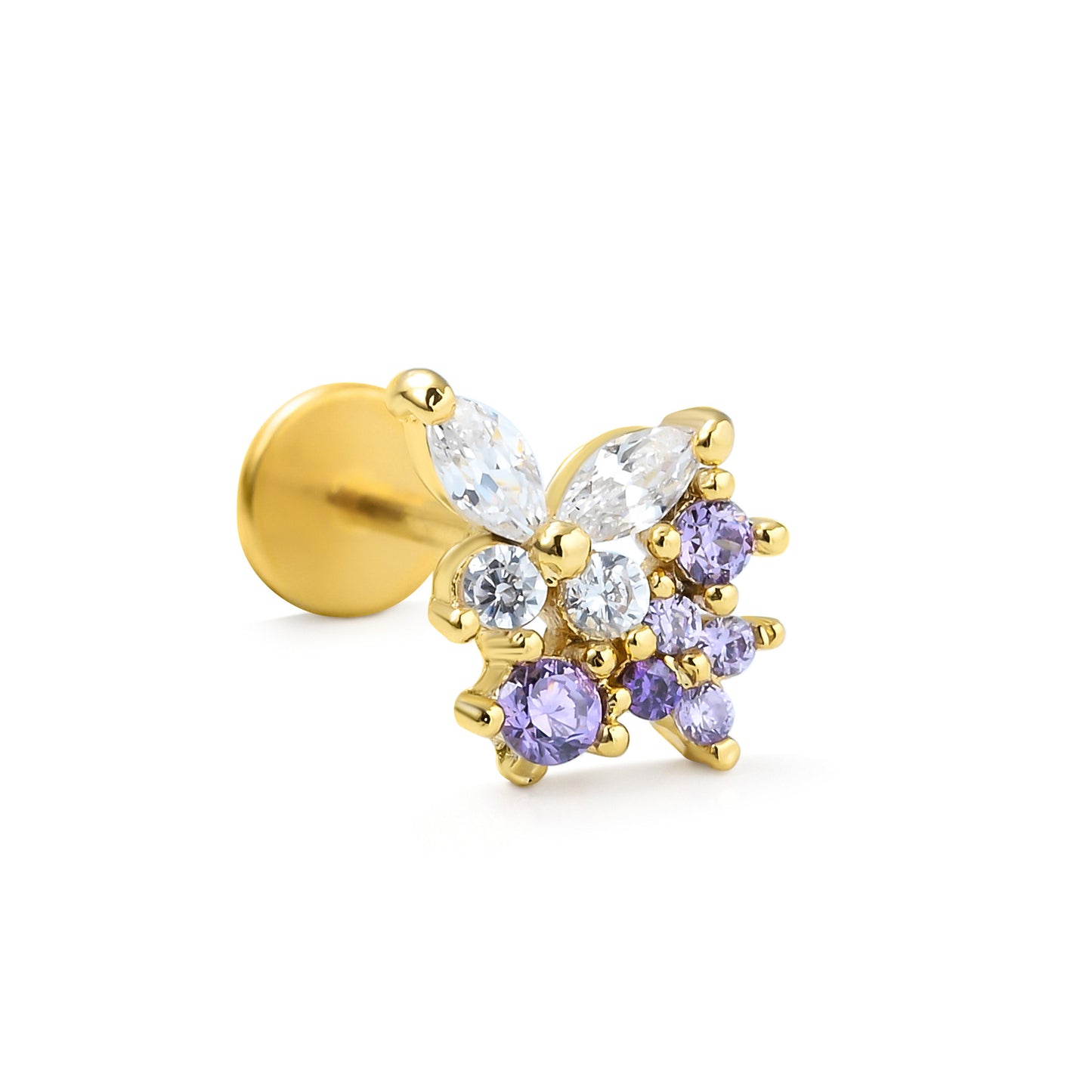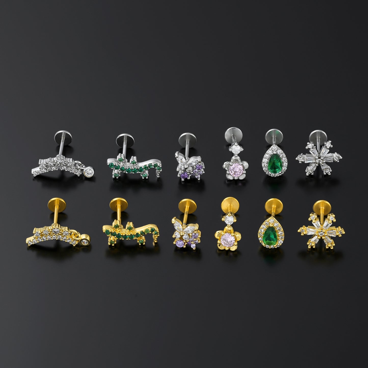 18k Gold Plated Flower Lizard Butterfly Zircon Lip Stud Earrings