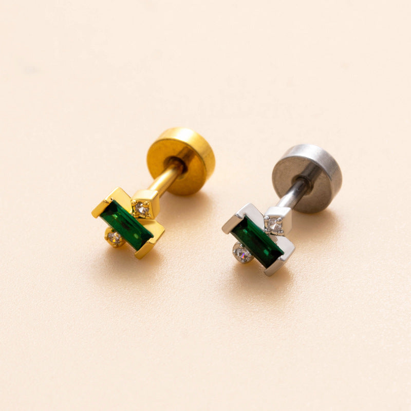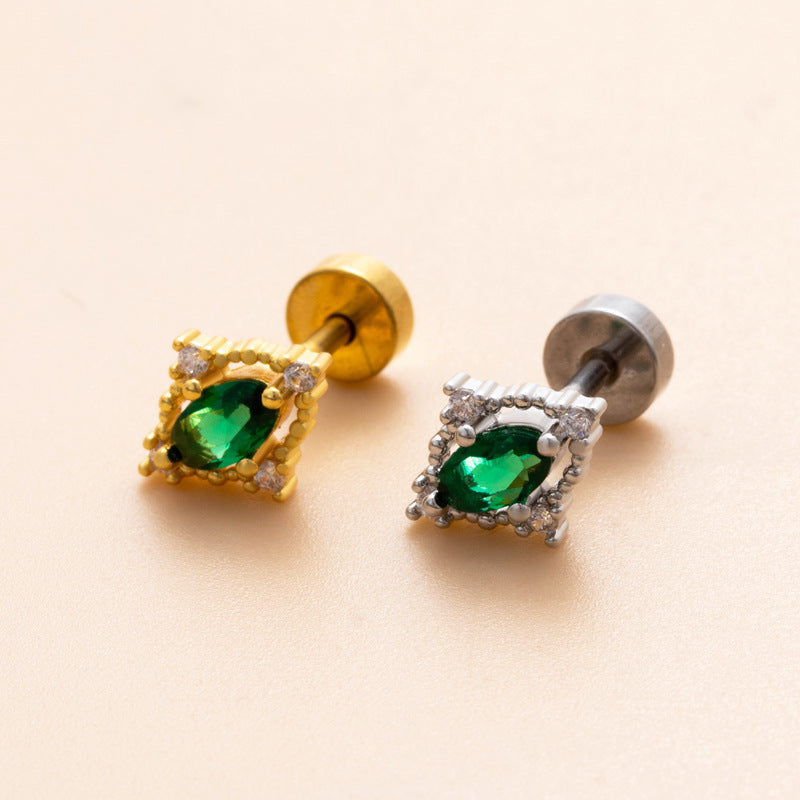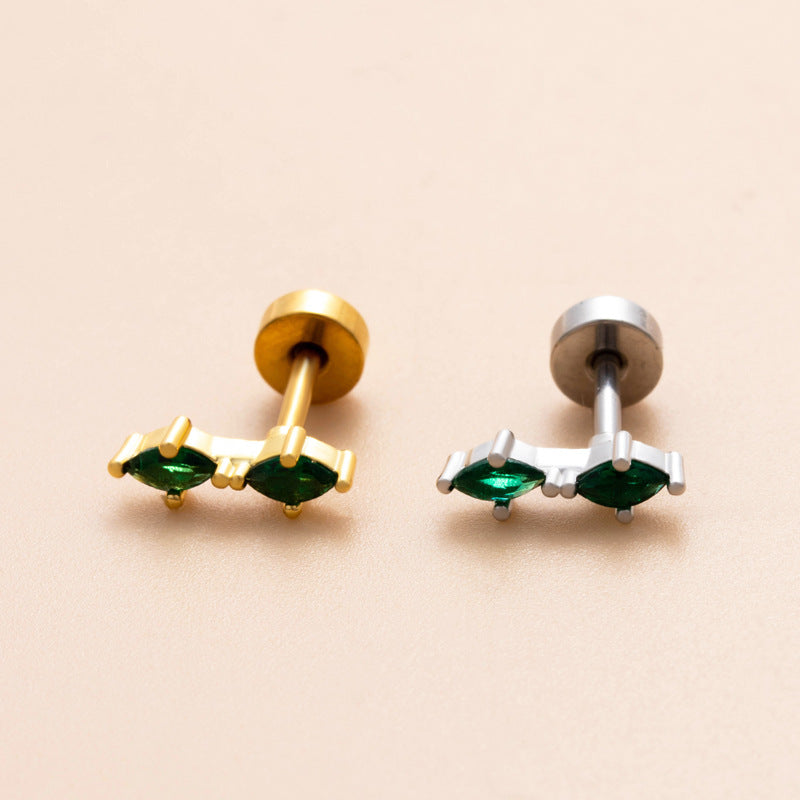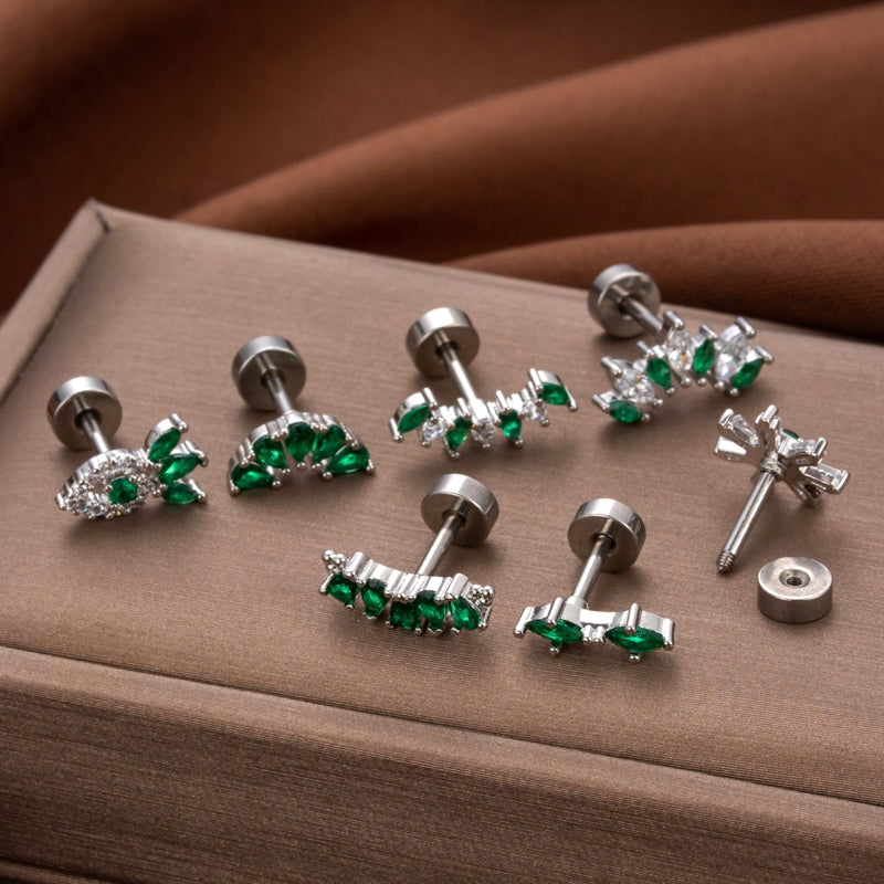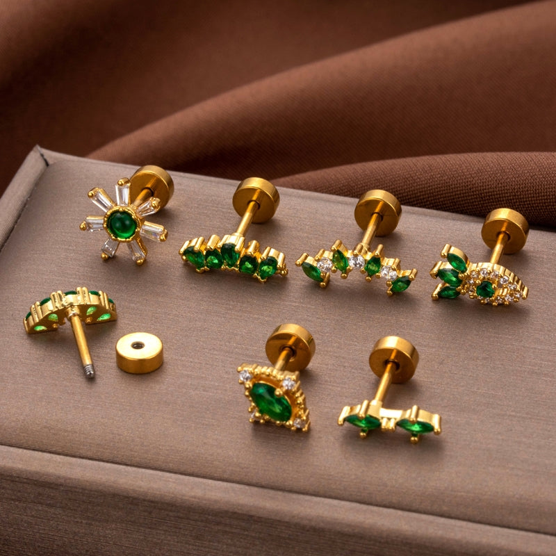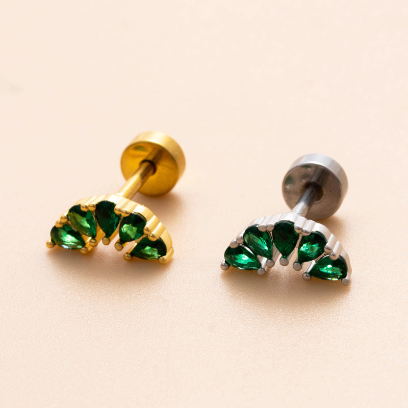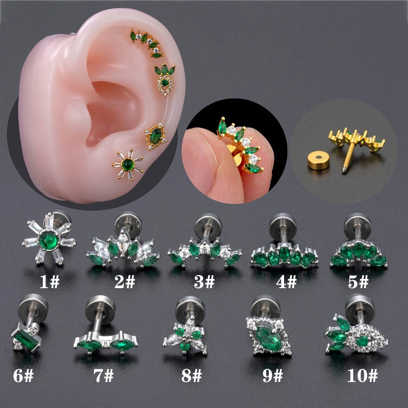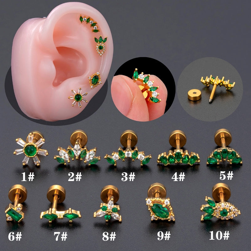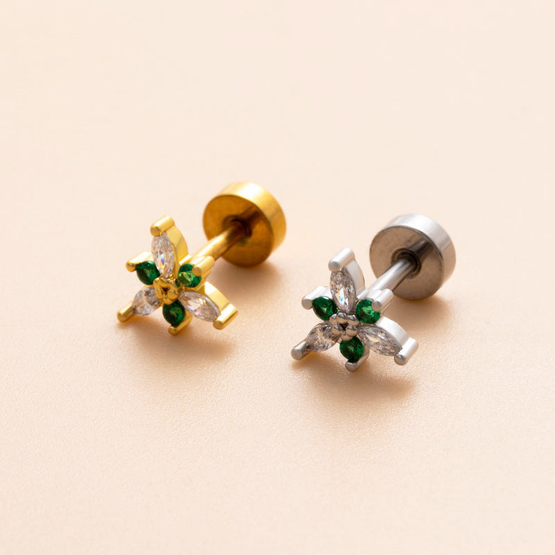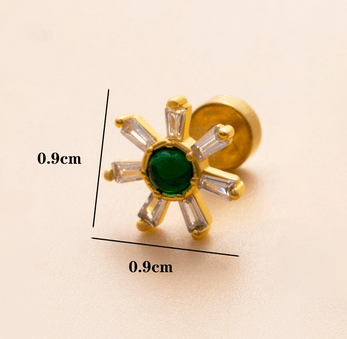 18K Gold Plated Geometric Flower Zircon Ear Cartilage Studs with Stainless Steel Rod