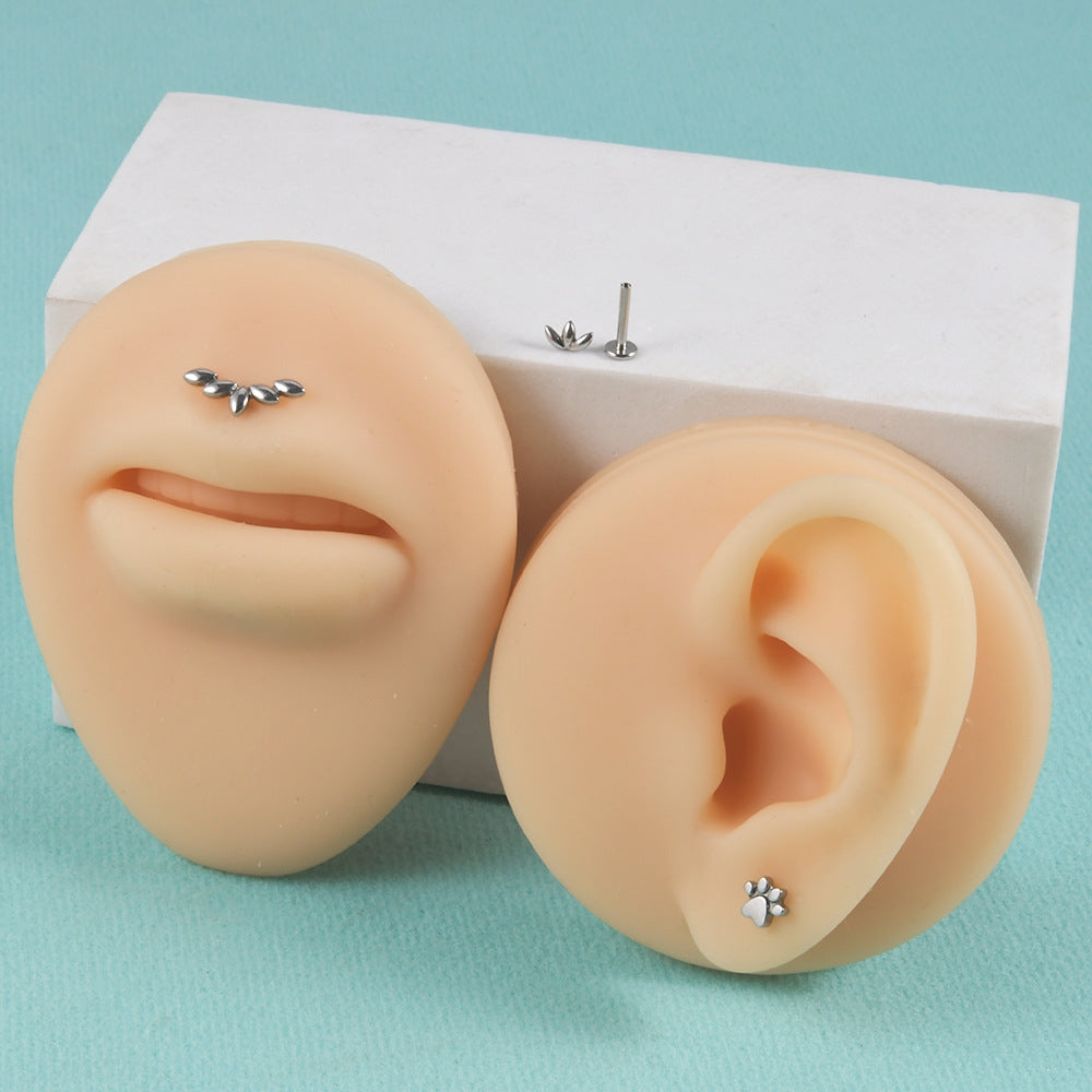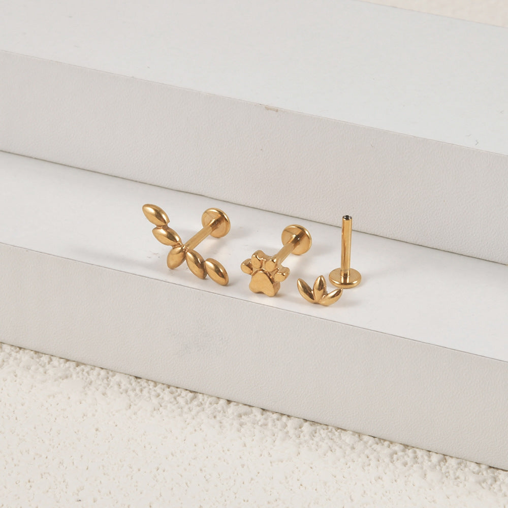 18K Gold Plated Leaf Marquise Lip Ring with Colorful T-Shaped Design