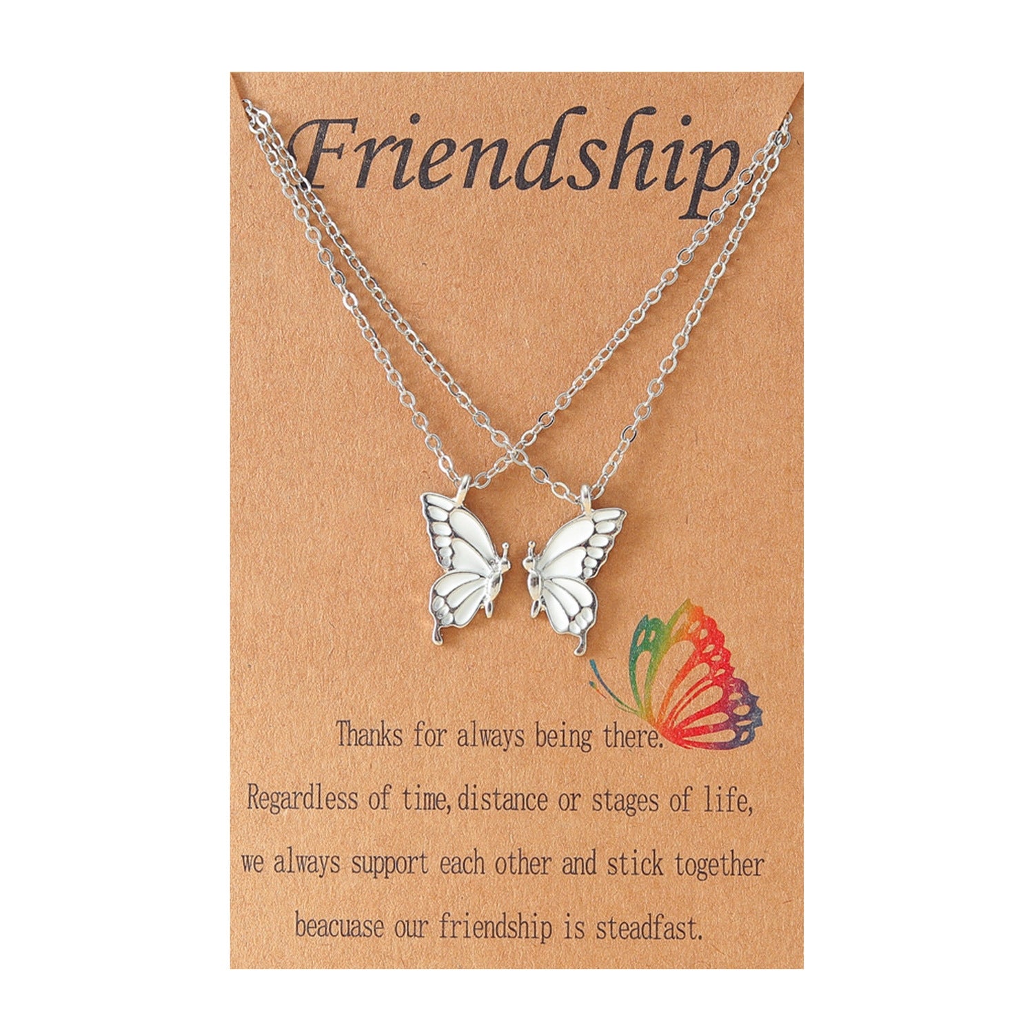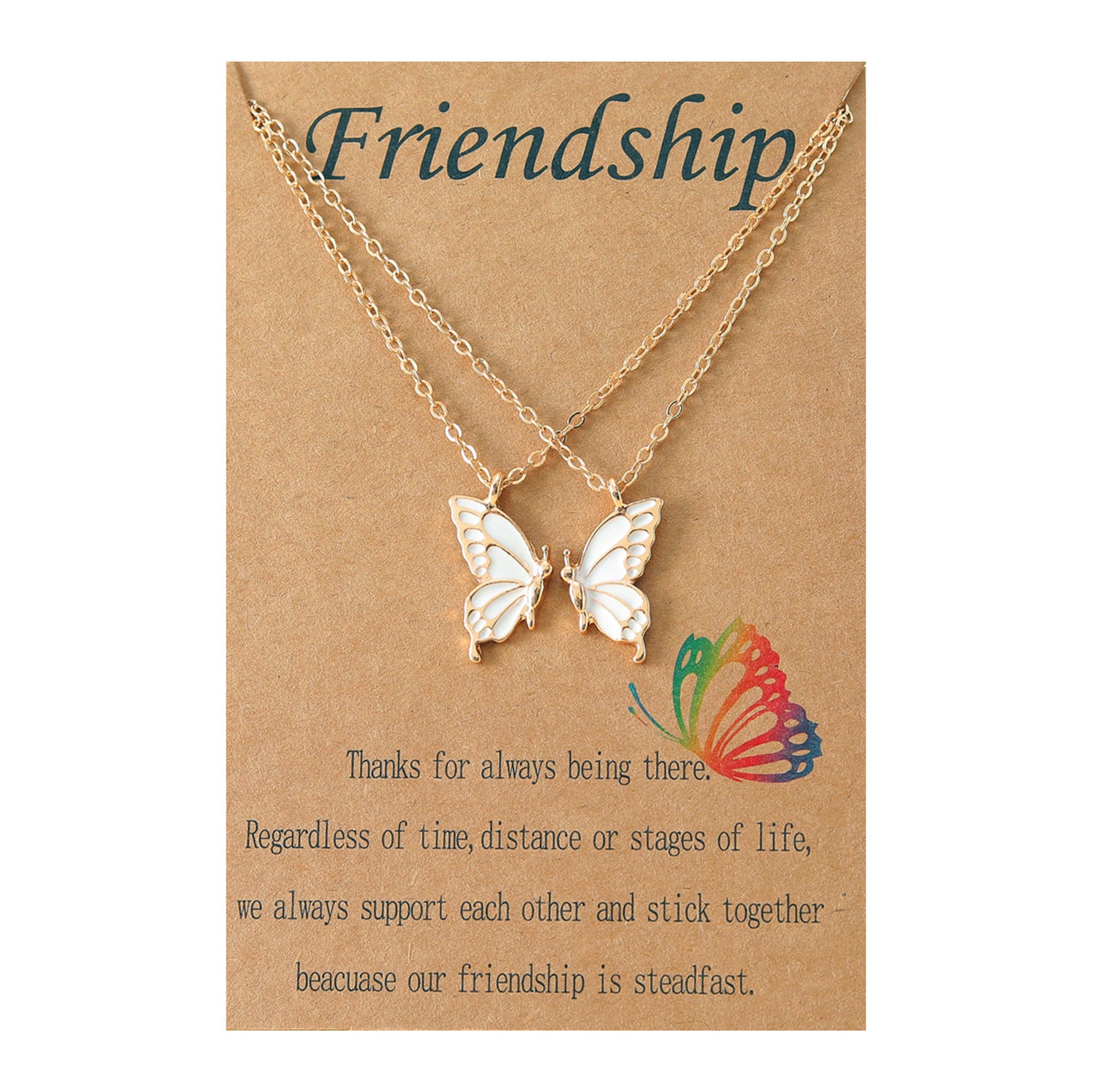 2 Piece Butterfly Alloy Enamel Pendant Necklace Set