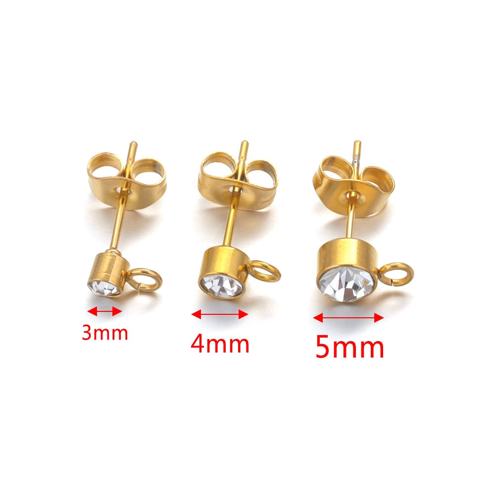 20 PCS Stainless Steel Zircon Round Earring Accessories - Simple Style Gold Plated Bead Hoop Design