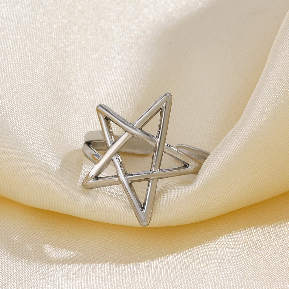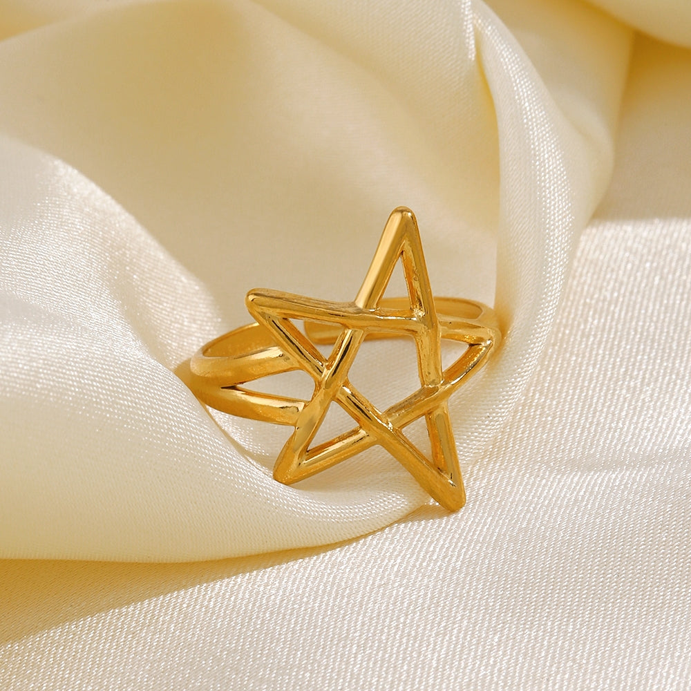 18K Gold Plated Stainless Steel Pentagram Adjustable Open Ring