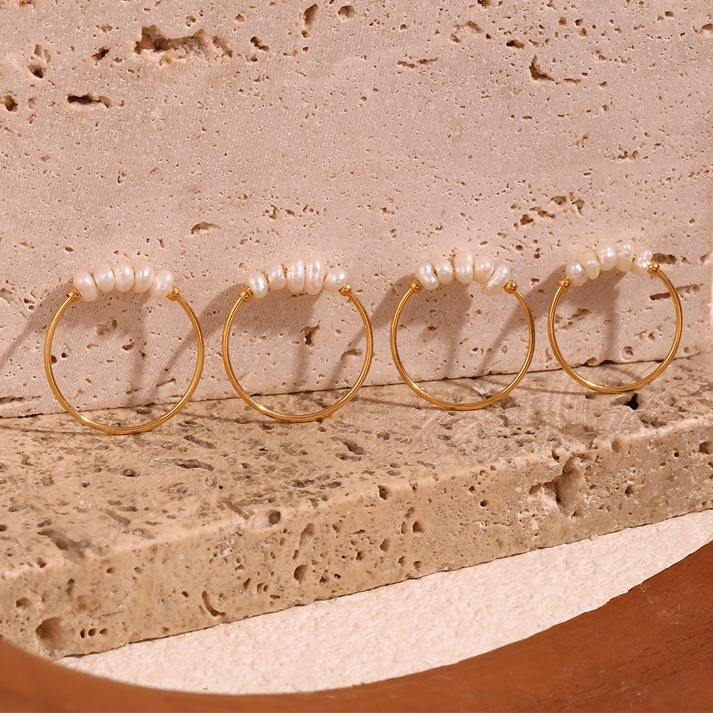 18K Gold Plated Stainless Steel Freshwater Pearl Minimalist Ring