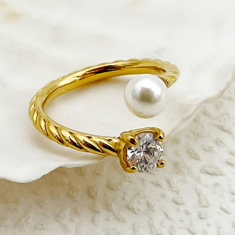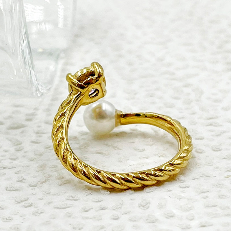 304 Stainless Steel Gold Plated Roman Style Pearl Zircon Open Ring