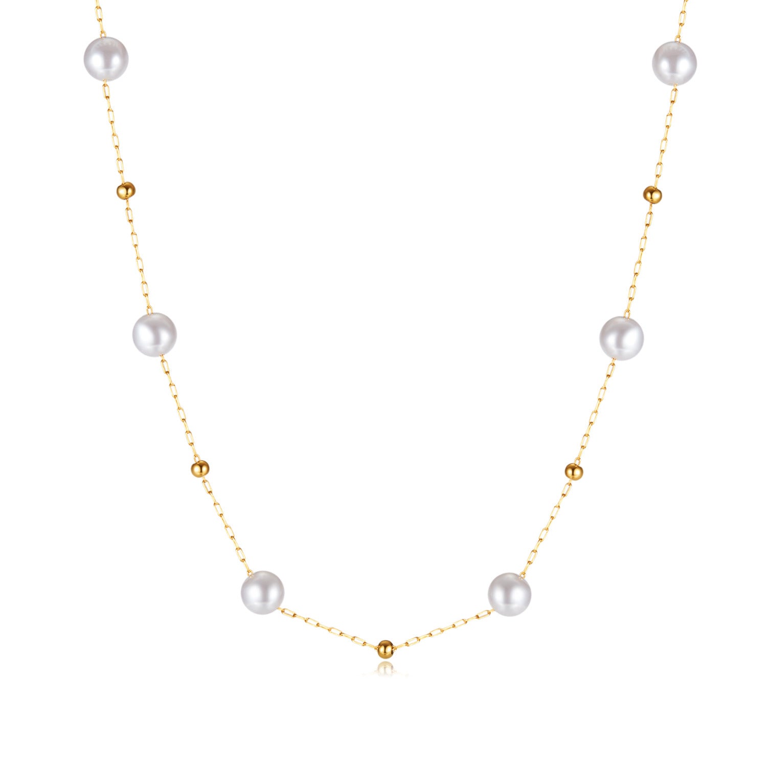 304 Stainless Steel Minimalist Pearl Necklace with Titanium Steel Accents