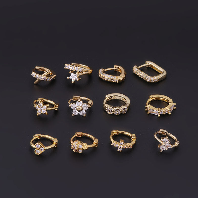 8MM Heart Flower Cross Copper Zircon Inlaid Ear Cuff