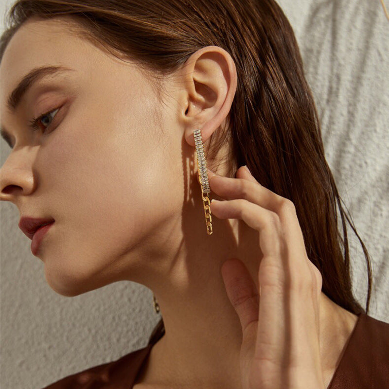 925 Silver Needle Zircon Chain Tassel Earrings - Trendy Long Statement Earrings for Women 2023